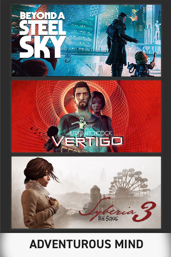 Исследуйте глубины саспенса, приключений и интриг с помощью этого набора необходимых игр: Alfred Hitchcock - Vertigo, Beyond a Steel Sky и Syberia 3. Погрузитесь в увлекательные миры, разгадайте захватывающие тайны и откройте для себя необыкновенные истории.