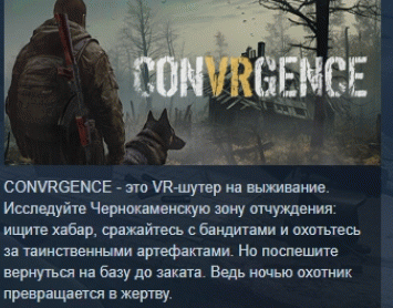 CONVRGENCE - это новая игра от создателя Paradox of Hope. Исследуйте таинственную Чернокаменскую зону отчуждения со своим верным четвероногим другом. Ищите хабар, сражайтесь с бандитами и охотьтесь за мистическими артефактами. Но поспешите вернуться на базу до заката, ведь ночью охотник превращается в жертву.