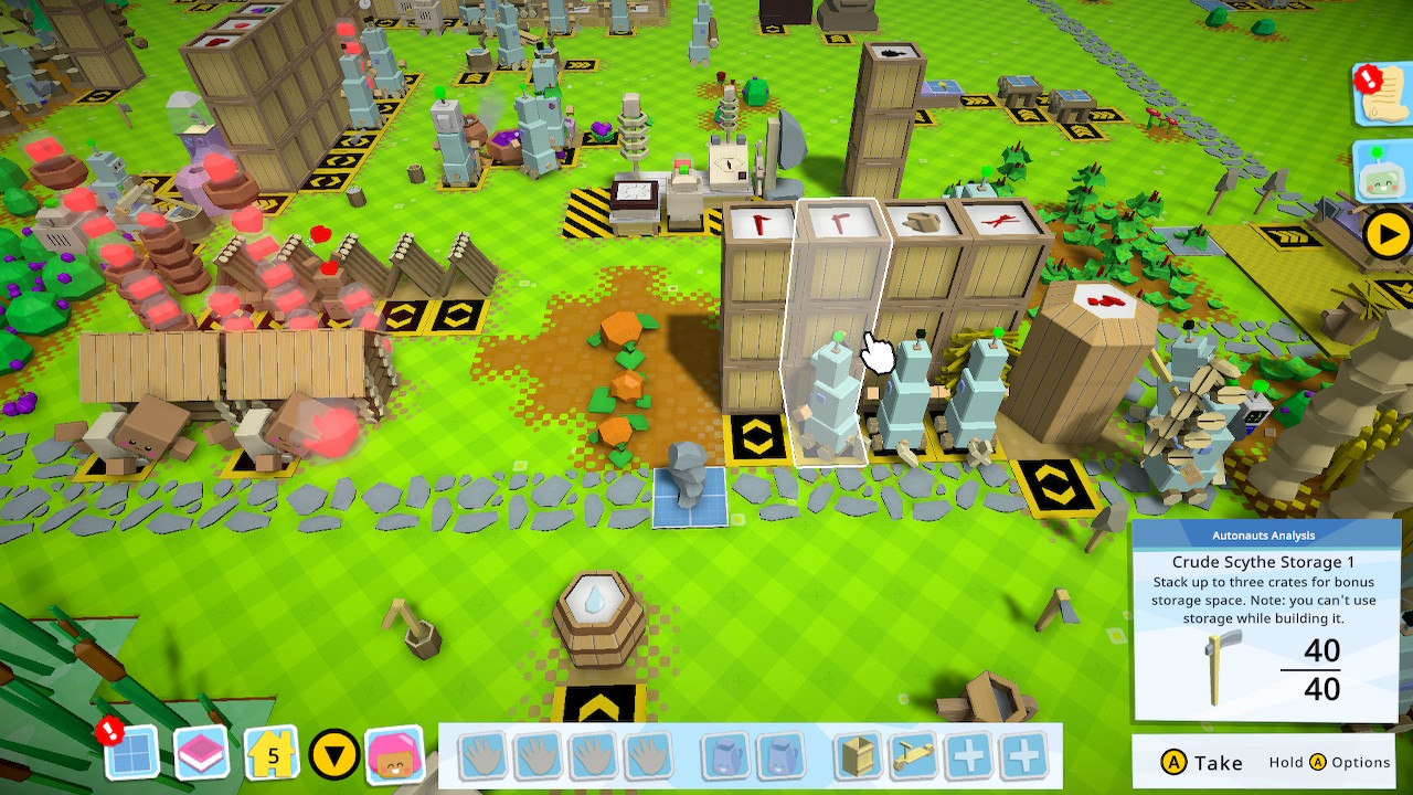 Вселенная Autonauts таит в себе безграничные возможности для автоматизации. Вы можете заниматься добычей ресурсов, строительством, готовкой, ловлей рыбы, сельским хозяйством... Выбор зависит только от вас.