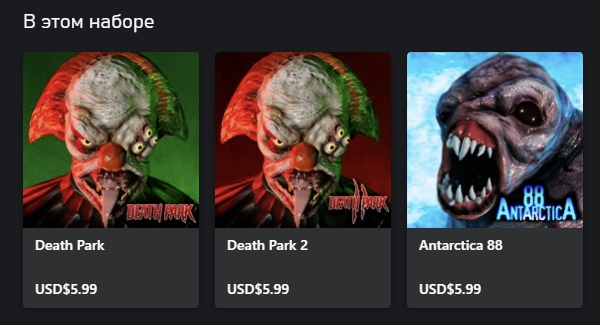 В этот комплект входят три ужасающие игры ужасов — культовые Death Park 1 и 2 и ужасающая Антарктида88. Готовы ли вы встретиться лицом к лицу со своими самыми глубокими страхами?