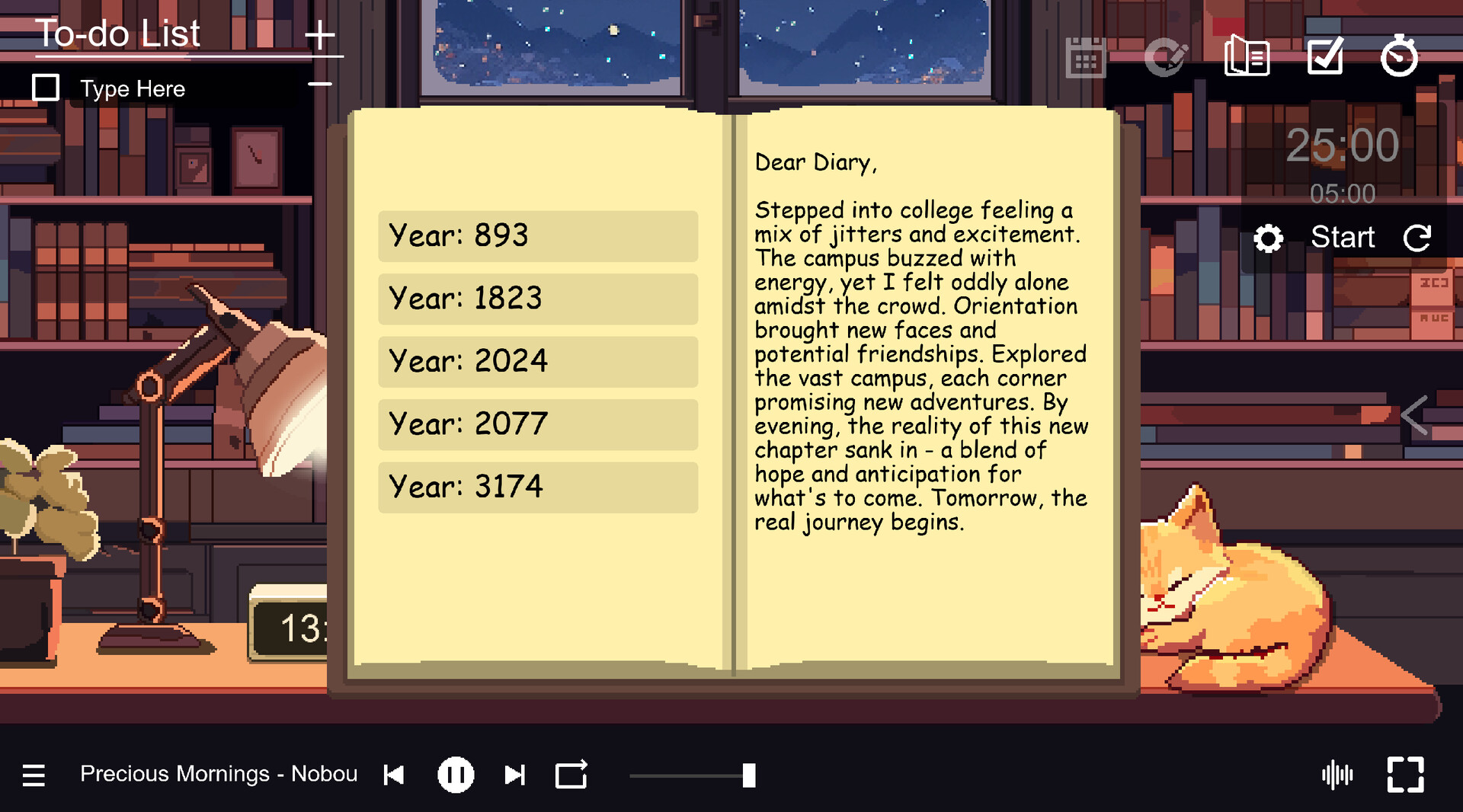Chill Pulse сочетает в себе инструменты продуктивности с тихими окружениями. Используйте таймер Помодоро и списки дел для повышения концентрации внимания, в то время как звуки окружения от городов киберпанка до древних ландшафтов способствуют расслаблению.