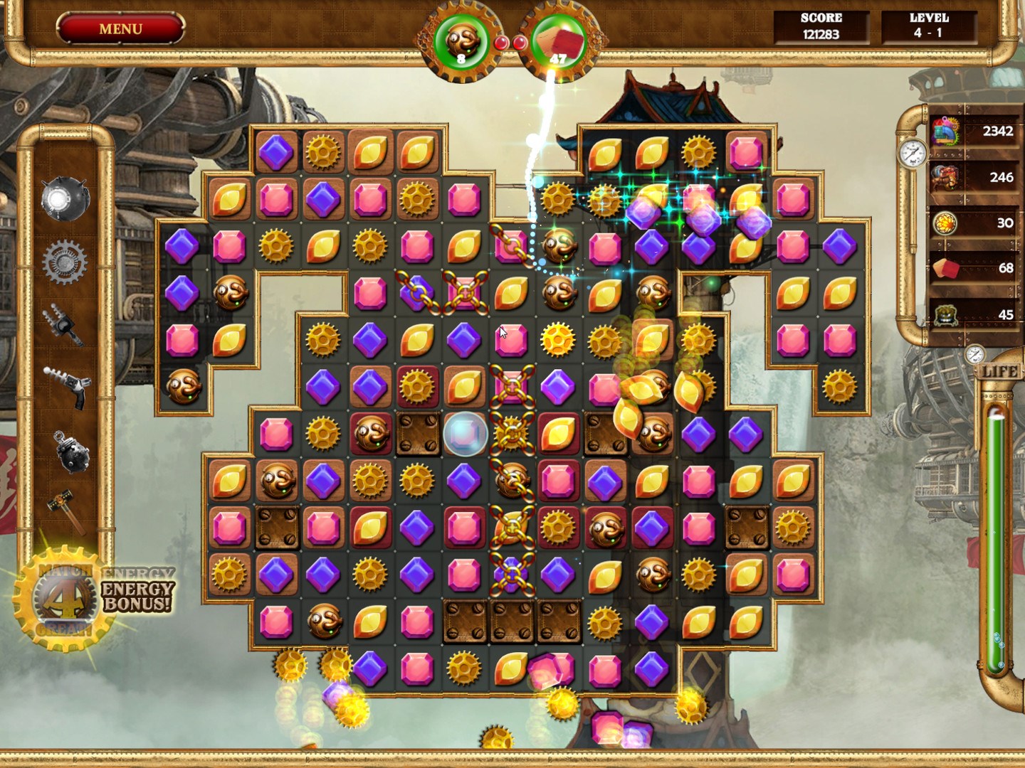 В новой игре три-в-ряд «Бессумеречный город. Механическая армия» действие разворачивается в вымышленном городе, полном механических чудес. Здесь изобретатели пользуются всеобщим уважением и обласканы правителем города, королем Уильямом. Однако кое-кому почестей и уважения оказалось мало: бывший придворный изобретатель, профессор Базель, лишившийся своего места благодаря талантливому юноше Хиро, решил отомстить. Для этого он тайком изготовил целую армию механических солдат и неожиданно нанес удар, разрушив полгорода и захватив королевский дворец. И теперь только Хиро и его изобретения могут помочь королю остановить Базеля и восстановить былое великолепие Поднебесья.Главные герои, уровни и карта, а также всевозможные бонусы выполнены в стимпанковской стилистике. Геймплей - типичный для игр такого плана. У вас есть игровое поле, на котором размещены различные предметы. Перемещая их между собой, нужно добиваться, чтобы они выстраивались в линии из трех и более одинаковых. Выстроенные линии сгорают, а предметы выше этих рядов опускаются на место сгоревших. Игрокам также доступны различные бонусы, которые заряжаются, если собирать по три в ряд определенные предметы, каждый раз разные.Задачи в игре тоже типичные для три-в-ряд: нужно собирать предметы, разбивать плитки, опускать различные квестовые штучки в низ игрового поля и тому подобное. Ничего, с чем бы не справился игрок, хоть раз игравший в подобную игру. Ну а для совсем неопытных пользователи доступен простой режим прохождения, когда ограничений по времени нет совсем. Для всех остальных подойдет режим со временем.Игра разбита на пять глав, в каждой доступно несколько улучшений для города, и после того, как очередное из них куплено, картинка на заставке меняется: пожары прекращаются, разрушения и завалы разбираются. Также меняются поля для прохождения уровней.