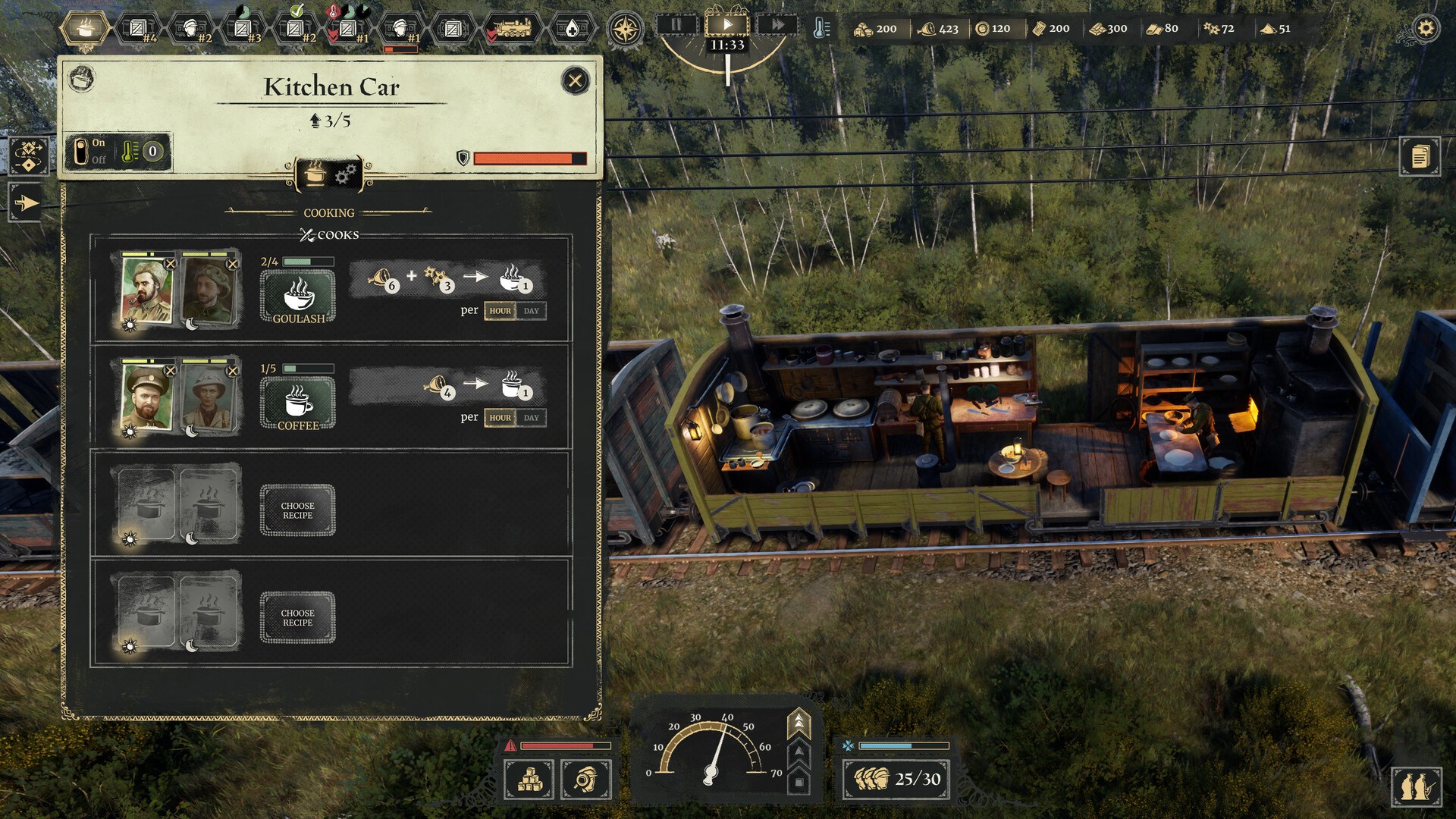 УПРАВЛЯЙТЕ ЭКИПАЖЕМ ПОЕЗДА: назначайте солдат в поезде на небоевые специальности, мастерите предметы, лечите раненых и не забывайте восстанавливать боевой дух солдат в этом долгом путешествии.