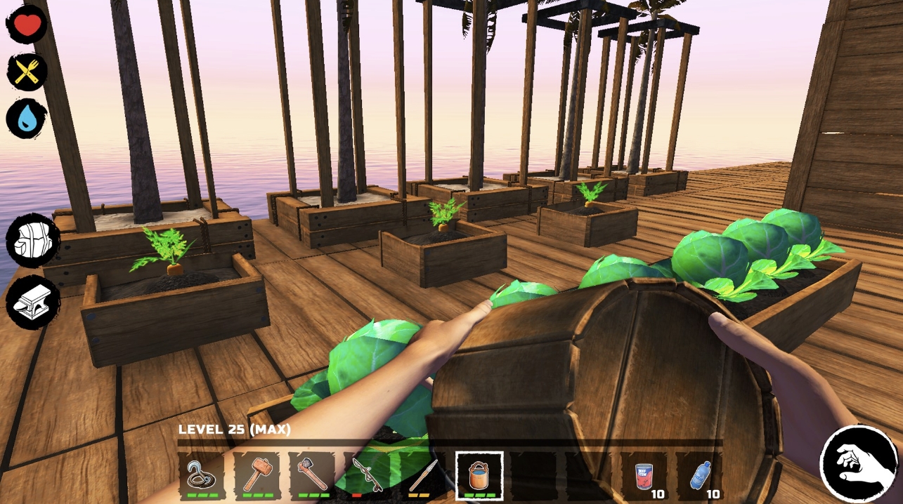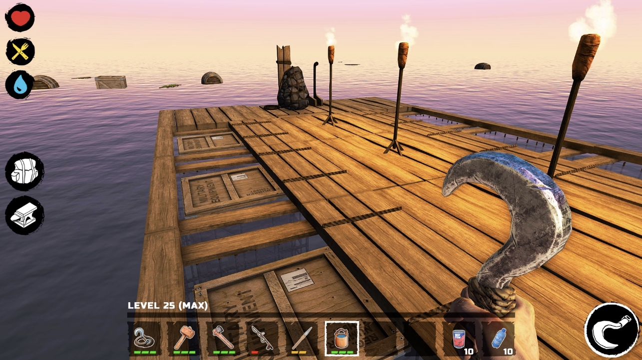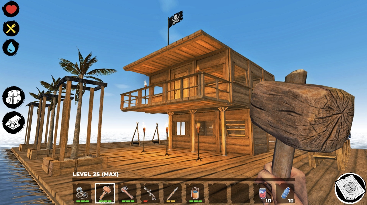 Собирайте ресурсы и еду, изучайте чертежи новых зданий и постройте свой плот. И не забывайте следить за своей жаждой и голодом!