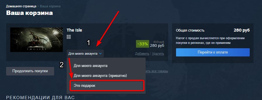 🟢 2. Игра должна быть доступна к покупке в подарок (чтобы проверить это - добавьте игру в корзину, откройте страницу корзины и возле игры должно быть меню с пунктом "Это подарок"), чтобы мы могли Вам её купить в подарок
