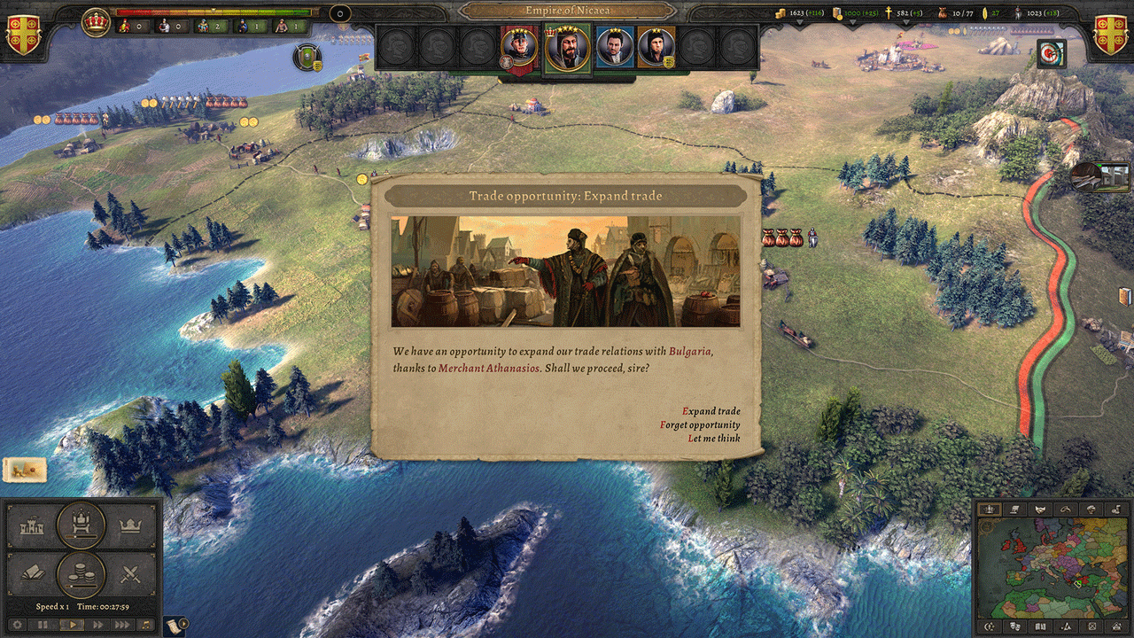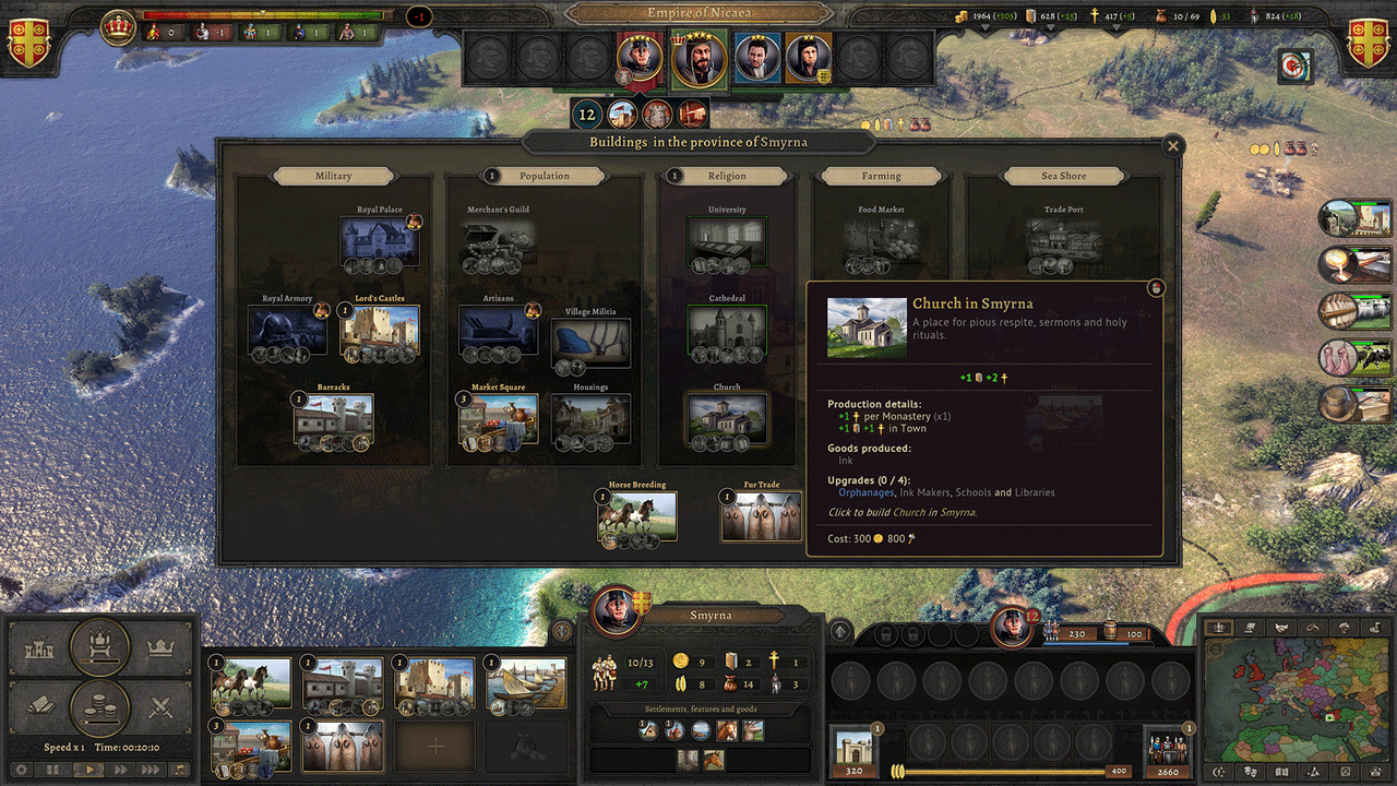 • Королевский двор: нанимайте маршалов, клириков, купцов, дипломатов и шпионов, чтобы они претворяли в жизнь вашу волю.