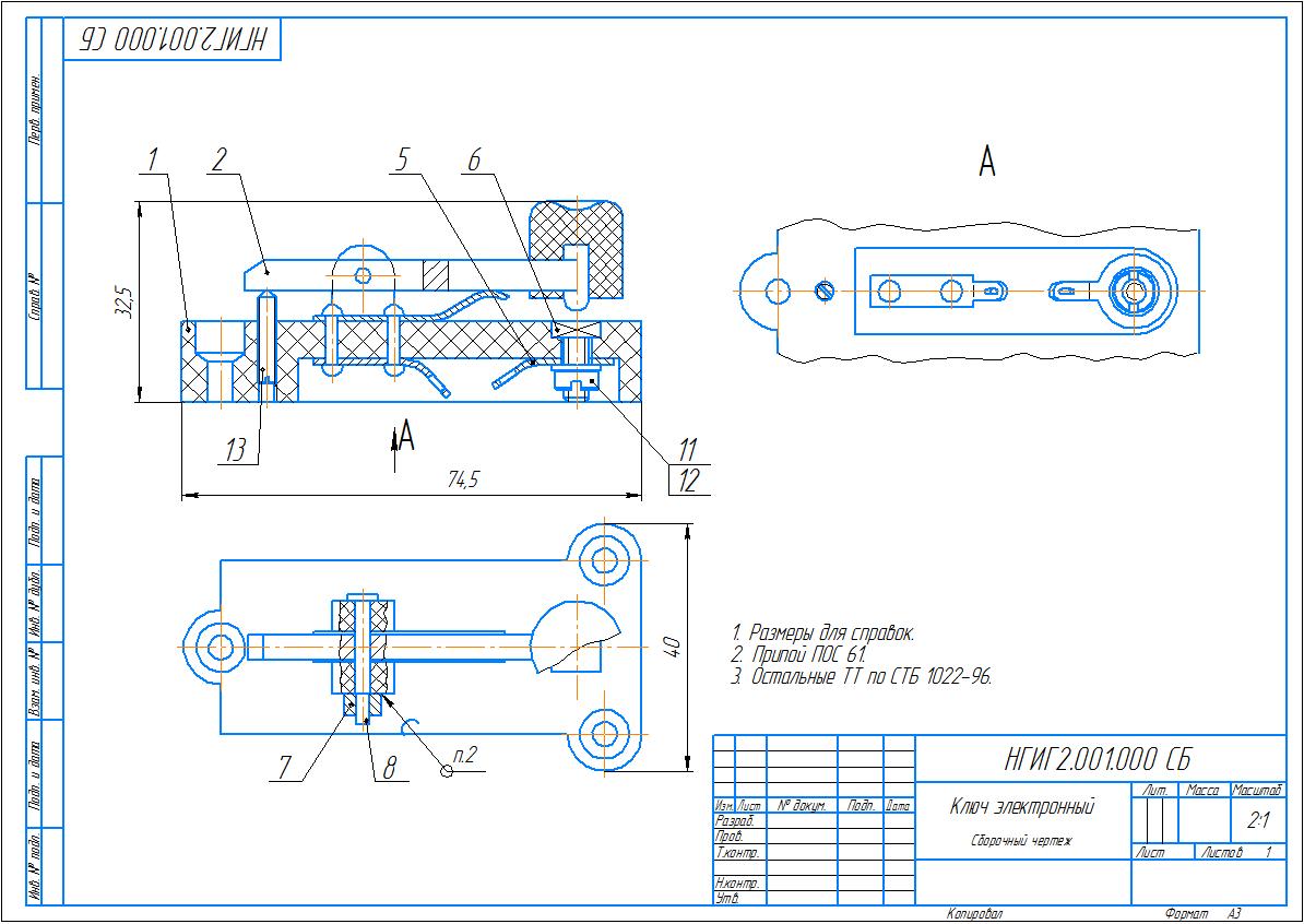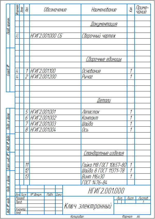Чертеж и спецификация сборки ключ электронный в компасе версии 20.