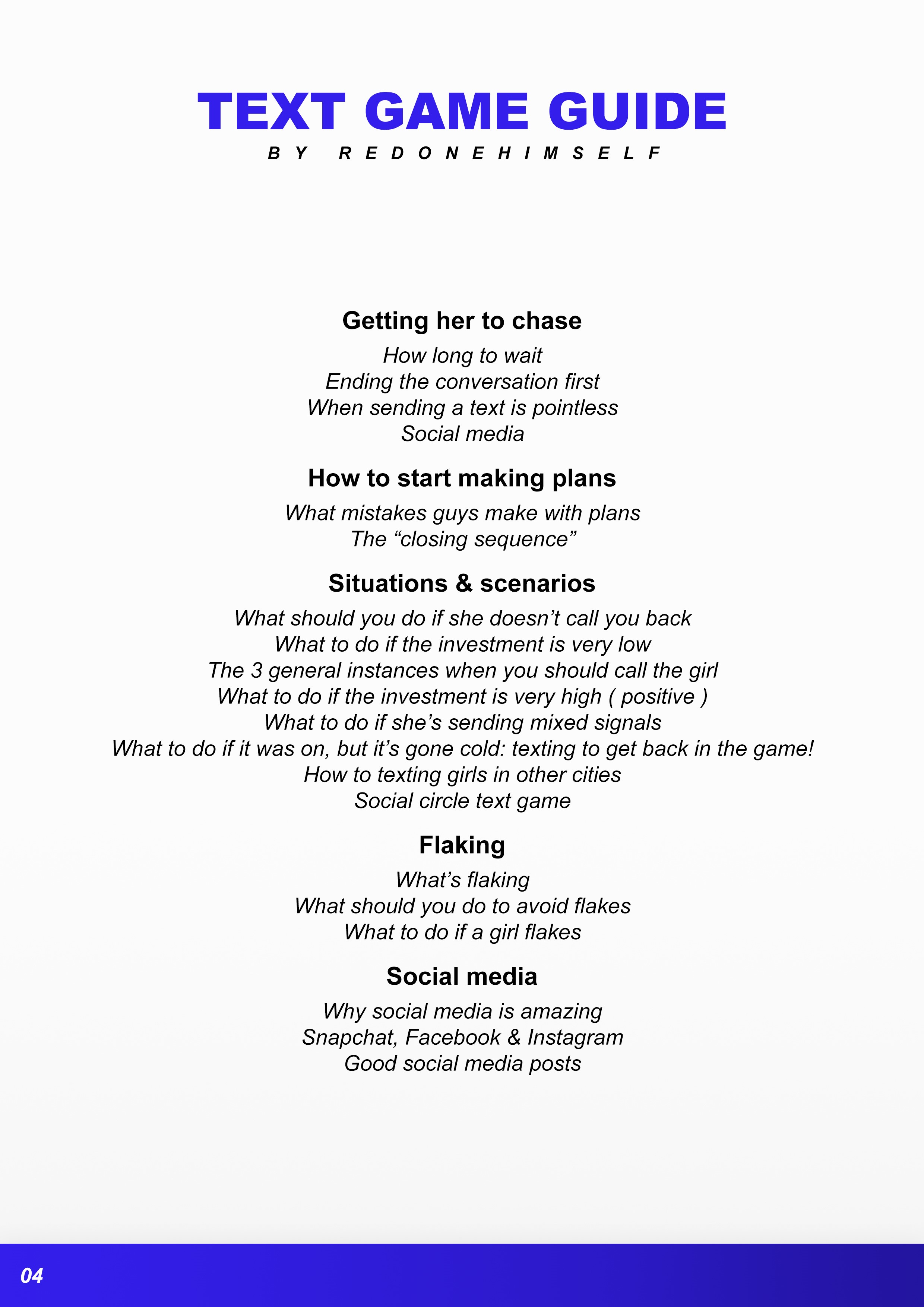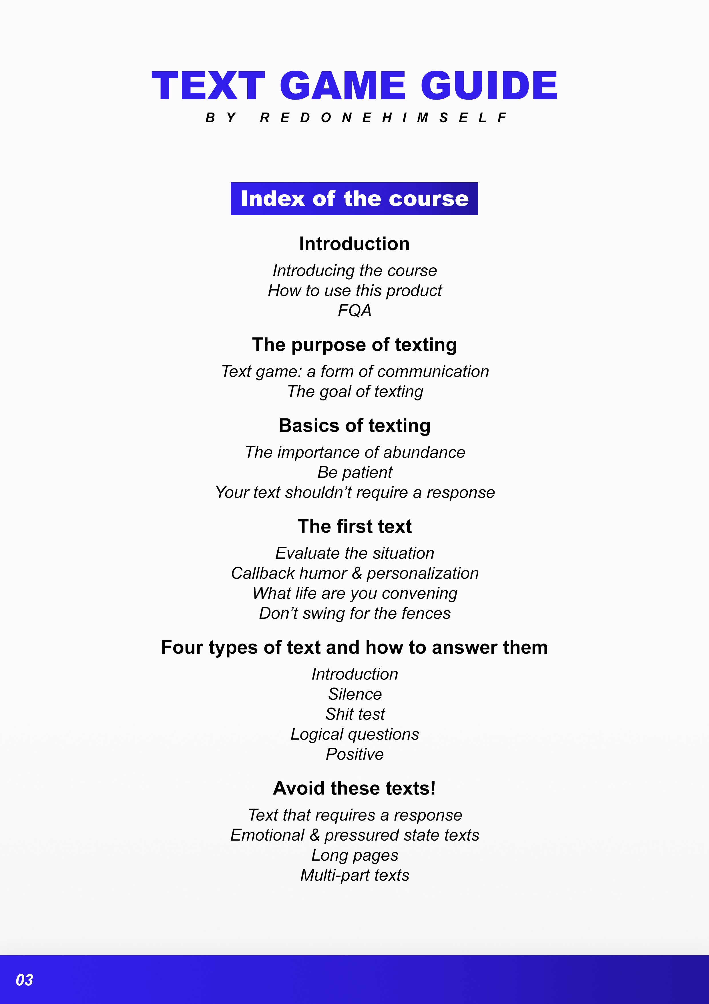 Раскройте секреты овладения искусством текстовых игр и повысьте свой успех на свиданиях с помощью нашей обширной электронной книги. Это руководство, созданное для тех, кто хочет улучшить свои коммуникативные навыки и наладить значимые связи, глубоко погружается в тонкий мир текстовых сообщений, чтобы помочь вам уверенно взаимодействовать с женщинами и обеспечить эти неуловимые первые свидания.