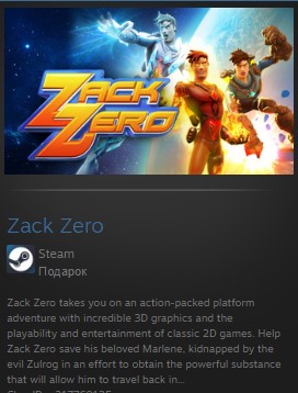 Zack Zero отправит вас в захватывающее приключение на платформе с невероятной 3D-графикой, а также игровыми возможностями и развлечениями классических 2D-игр. Помогите Заку Зеро спасти его возлюбленную Марлен, похищенную злым Зулрогом в попытке получить мощное вещество, которое позволит ему вернуться в...