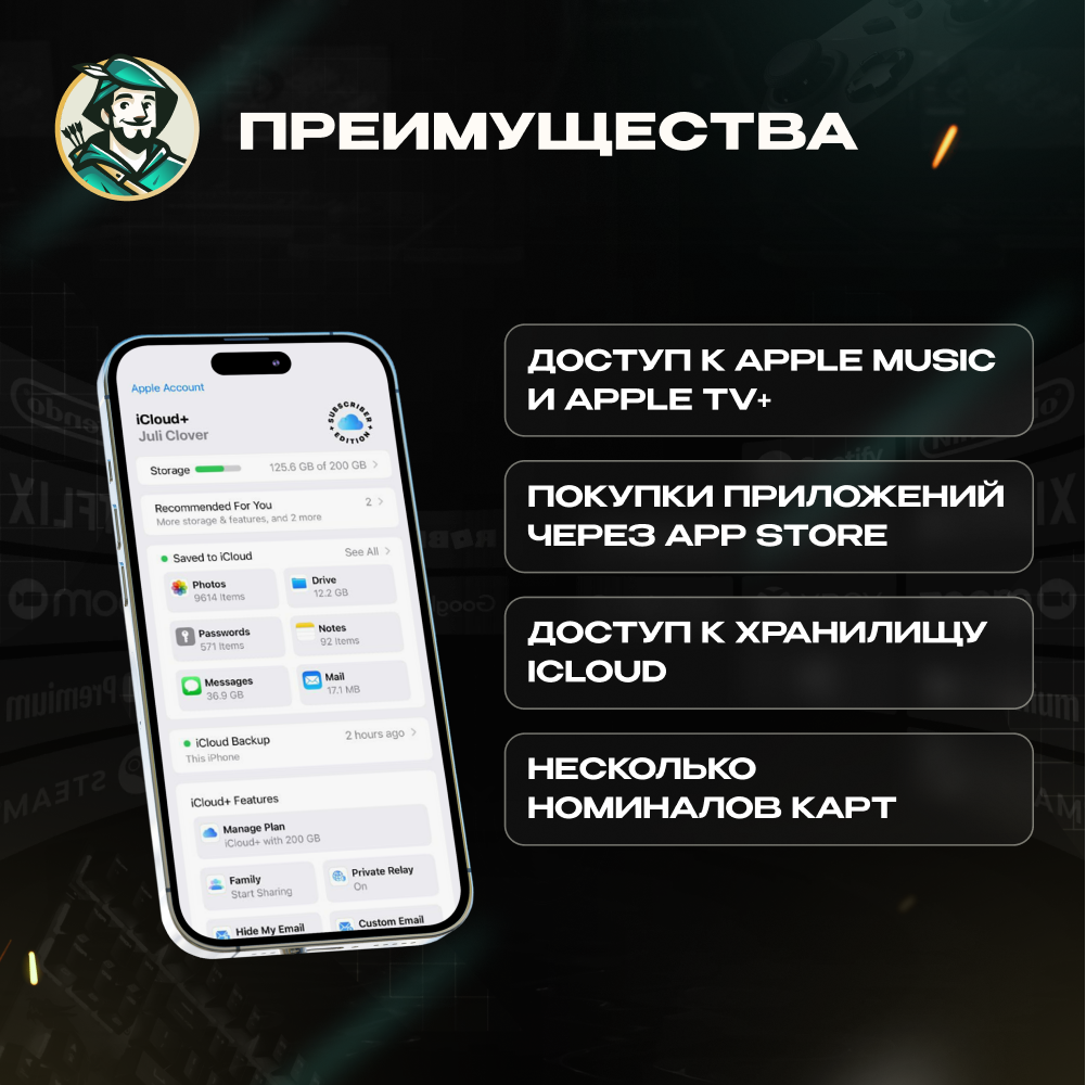 🔸Можно использовать для подписки на Apple Music, Apple TV+, Apple Arcade и iCloud.