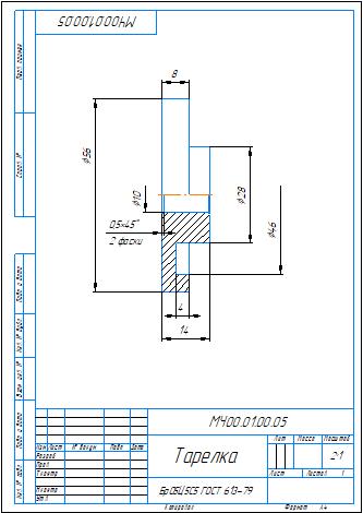 Рабочий чертеж детали МЧ00.01.00.05 тарелка в компасе из сборки МЧ00.01.00.00 из сборника по деталированию Боголюбова