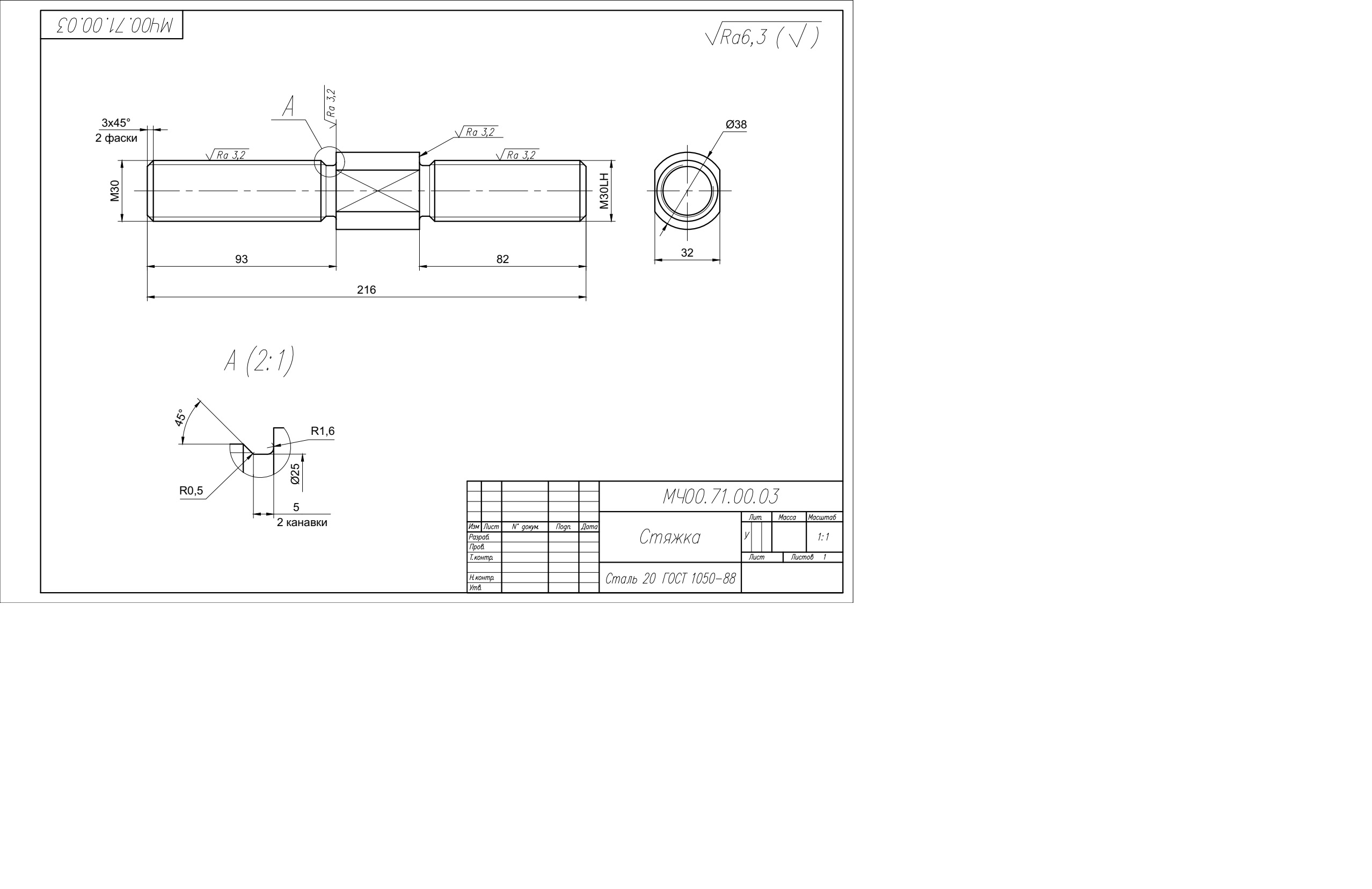 Рабочий чертеж детали стяжка МЧ00.71.00.03 в AutoCAD из сборки МЧ00.71.00.00 альбома по деталированию Боголюбова