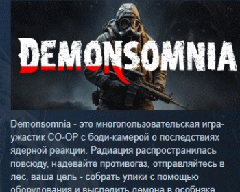 Демонсомния (Demonsomnia) - это кооперативная многопользовательская игра в жанре ужасов от первого лица с камерой на теле персонажа, основанная на теме последствий ядерной реакции. Возьми свое оружие, отправься в лес и собери радиоактивные предметы, чтобы охотиться за призраками. Лес наполнен жителями деревни, странными мутировавшими существами и мрачной атмосферой.