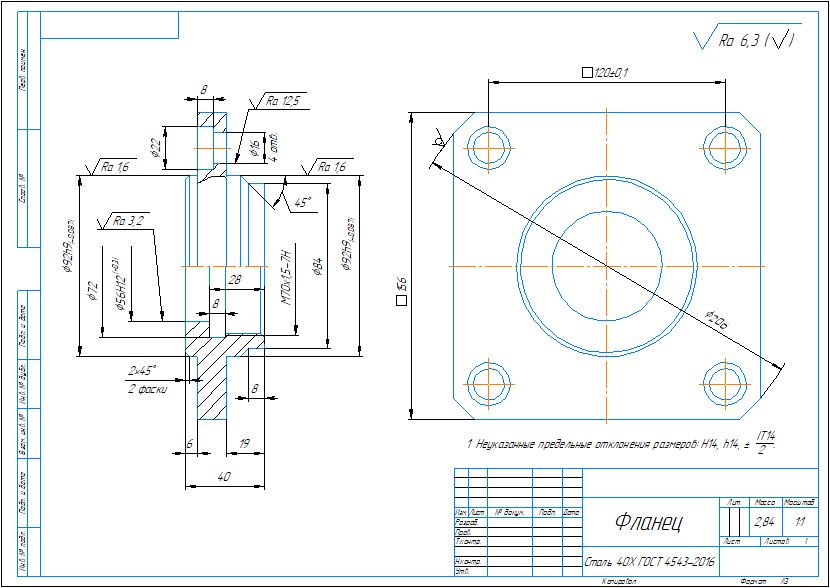 Рабочий чертеж детали фланец квадратный. Чертеж заготовки для фланца. Технологический процесс изготовления детали фланец в виде технологических карт: маршрутные карты, операционные карты и карты эскизов. Чертежи выполнены в компасе, карты в ворде.