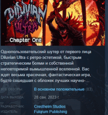 Diluvian Ultra кровавый ретро-шутер с бешенным ритмом, но вся эта мясорубка происходит на фоне трагической истории эпических масштабов, касающейся тем фанатизма, душевной раны, опыта, предательства и надежды на искупление. Все это происходит в неоготическом антураже огромных космических кораблей, подобным средневековым соборам.