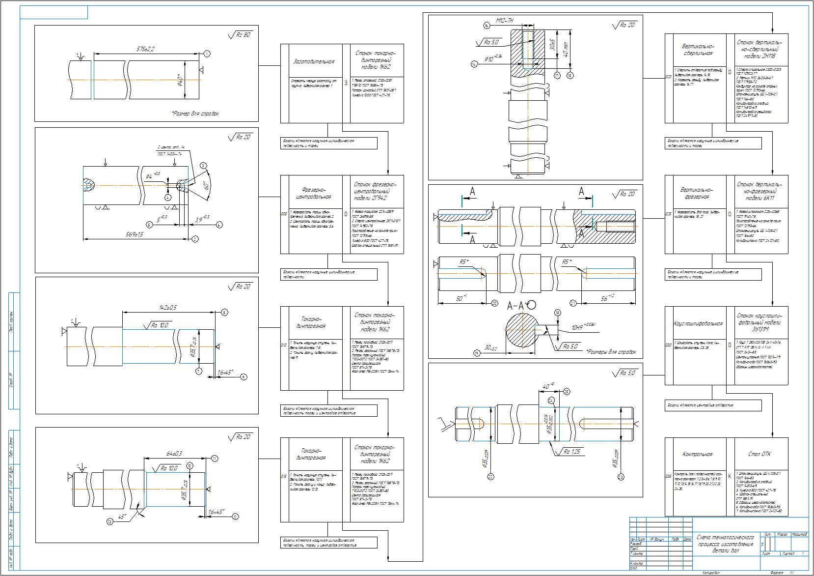 Технологический процесс изготовления детали вал в виде схемы технологического процесса на формате А1, а также технологических карт: маршрутные карты, операционные карты, контрольная карта, карты эскизов. Также приложен рабочий чертеж вала. Чертежи выполнены в компасе, карты в ворде.