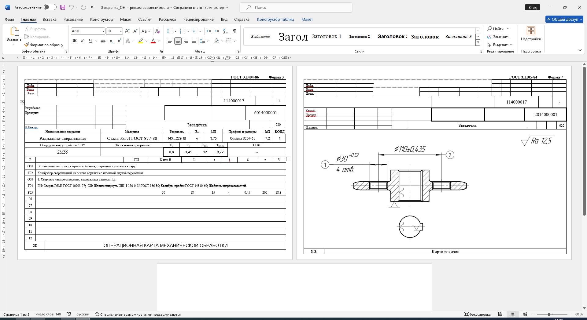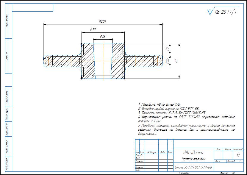 Рабочий чертеж детали звездочка, чертеж заготовки. Технологический процесс изготовления детали звездочка в виде маршрута обработки на форматах А1 и технологической карты на одну операцию (операционная карта а и карта эскизов). Чертежи выполнены в компасе. Карты выполнены в ворде.
