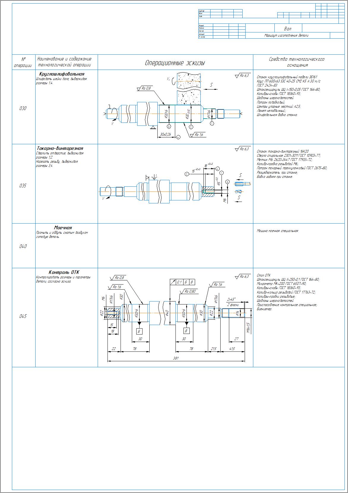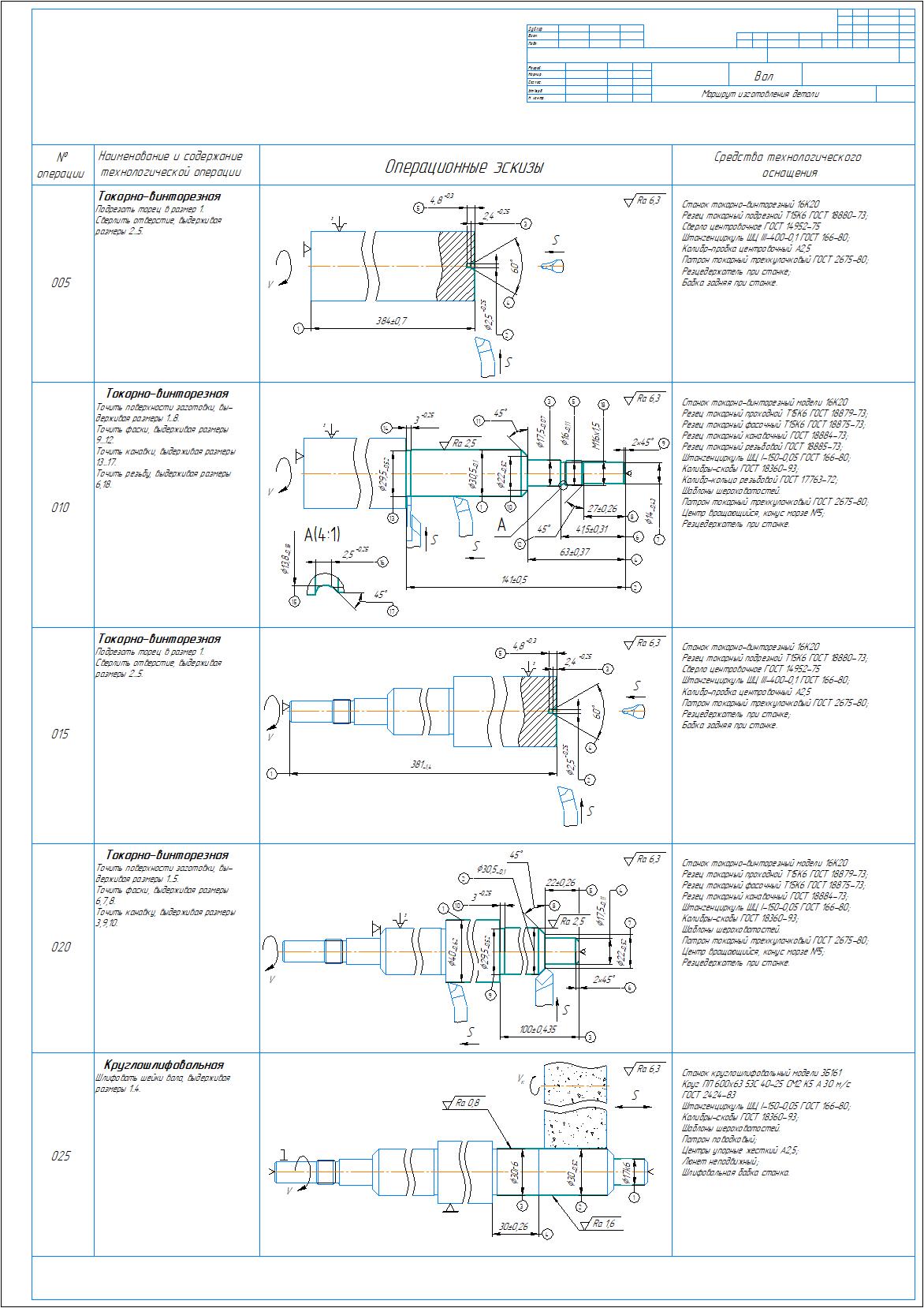 Рабочий чертеж вала, чертеж заготовки, маршрутный технологический процесс изготовления вала в виде плаката на форматах А1 с эскизами. Чертежи выполнены в компасе.