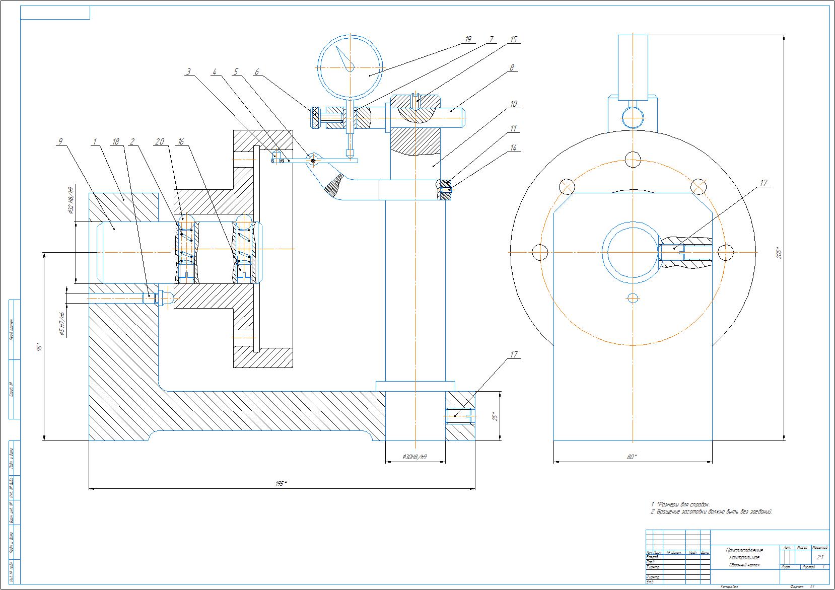 Сборочный чертеж и спецификация контрольно-измерительного приспособления для контроля радиального биения в отверстии детали полумуфта. Также приложен рабочий чертеж детали полумуфта. Чертежи выполнены в компасе