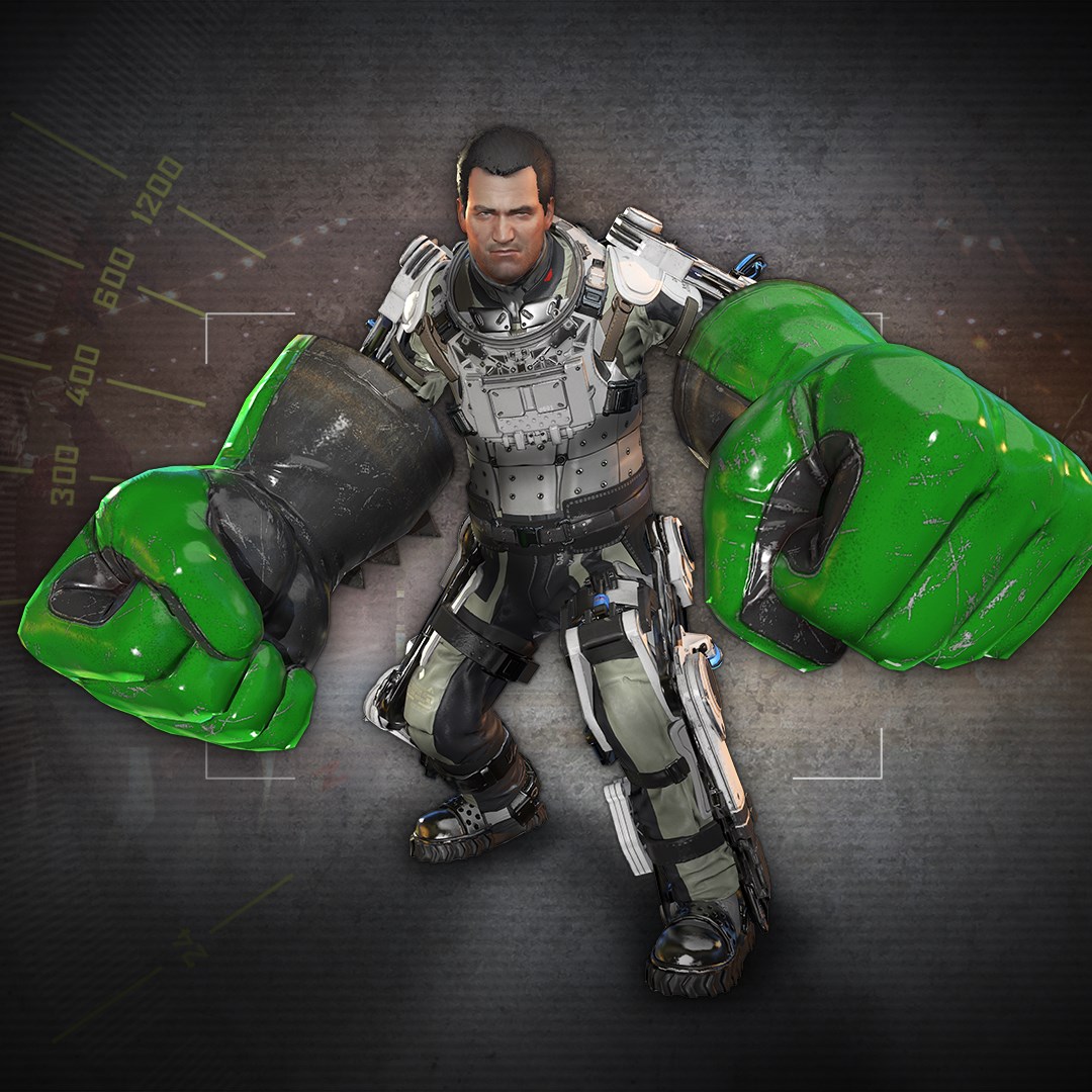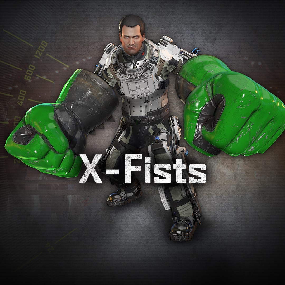 Проломите себе путь сквозь орду зомби надев эксклюзивные бойцовские перчатки Xкулаки Приобретя Xкулаки у продавца в убежище сюжетный режим или в торговом автомате совместный режим вы можете сразу соединить их со своим экзокостюмом и раздать серьезных тумаков