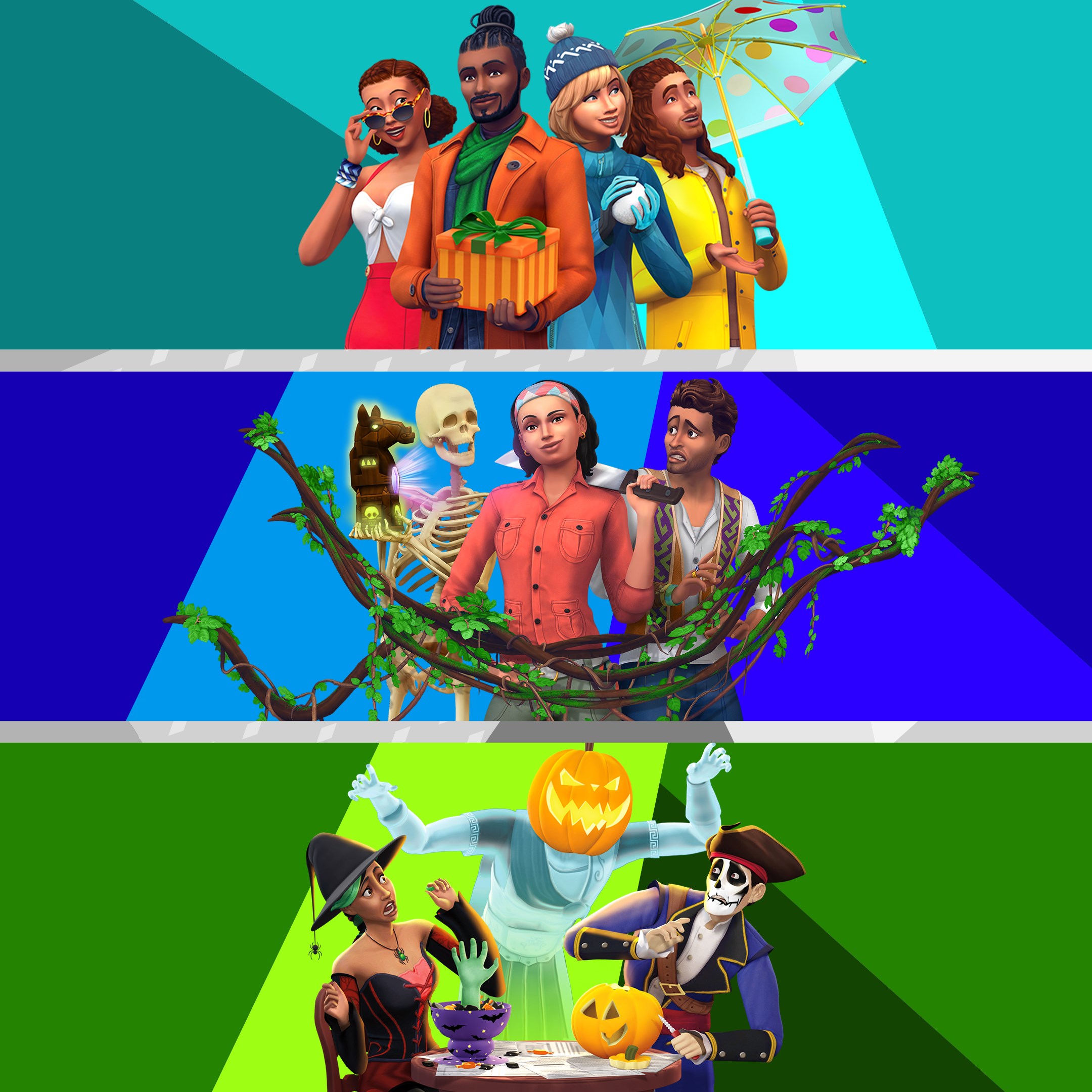 Разнообразьте игру с коллекцией по отличной цене Включает The Sims 4 Времена года Дополнение The Sims 4 Приключения в джунглях Игровой набор и The Sims 4 Жуткие вещи Каталог Разнообразьте жизнь симов с помощью погоды отправьте их на таинственный остров и преобразите их дома с помощью омерзительно веселых украшений
