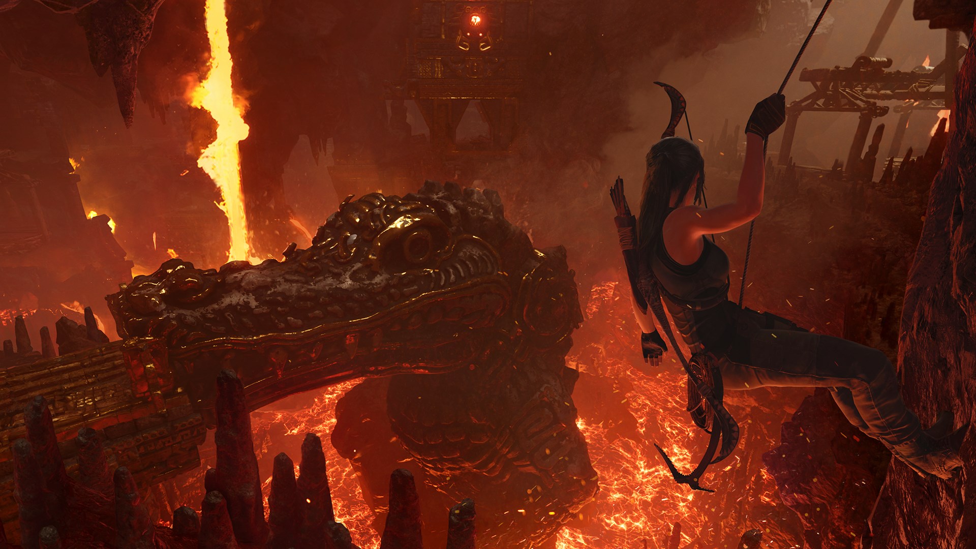 В новом дополнении Shadow of the Tomb Raider Великий кайман суровое божество грозит жителям деревни Защищая их от Тринити Лара сразится с наемниками пройдет испытания гробницы в недрах вулкана столкнувшись со смертельной опасностью С комплектом снаряжения Сила хаоса вы сможете обрушить на врагов ярость преисподней Дробовик с глушителем Шепчущий бич позволит неожиданно атаковать и уничтожить противника а костюм Шкура рептилии защитит от снарядов и даст вам больше опыта в бою