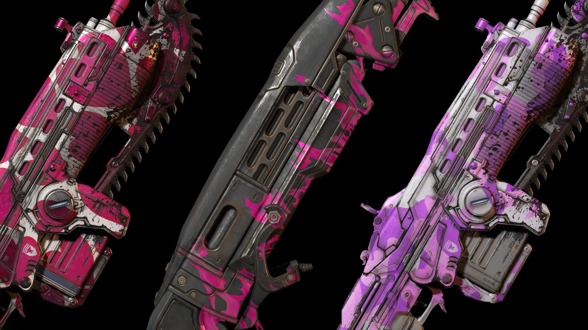 Добавим красоты Набор расцветок для оружия Розовый и сиреневый включает расцветки Сиреневая Романтичная и Яркорозовая для Лансера и Гнашера доступные в многопользовательской игре Gears of War Ultimate Edition