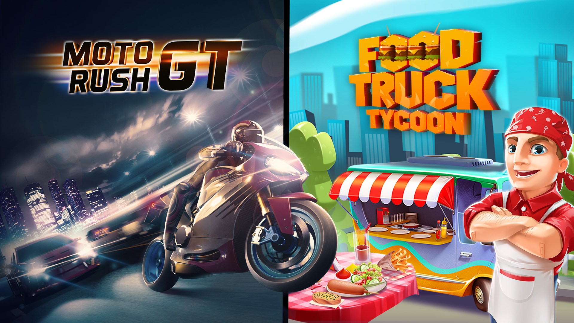 Embrace the thrill of highoctane racing and culinary mastery with the exhilarating Moto Rush GT Food Truck Tycoon Bundle