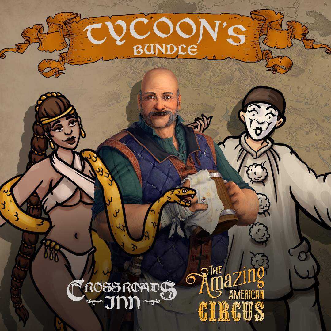 The Amazing American Circus вышла недавно в сентябре 2021 года тогда как Crossroads Inn одна из прошлых игр Klabater вышедшая в октябре 2019 года Отправьтесь в два разных но одинаково захватывающих мира Захотите ли вы стать хозяином фэнтезийной таверны или владельцем захудалого цирка XIX века вас точно ждут великие дела