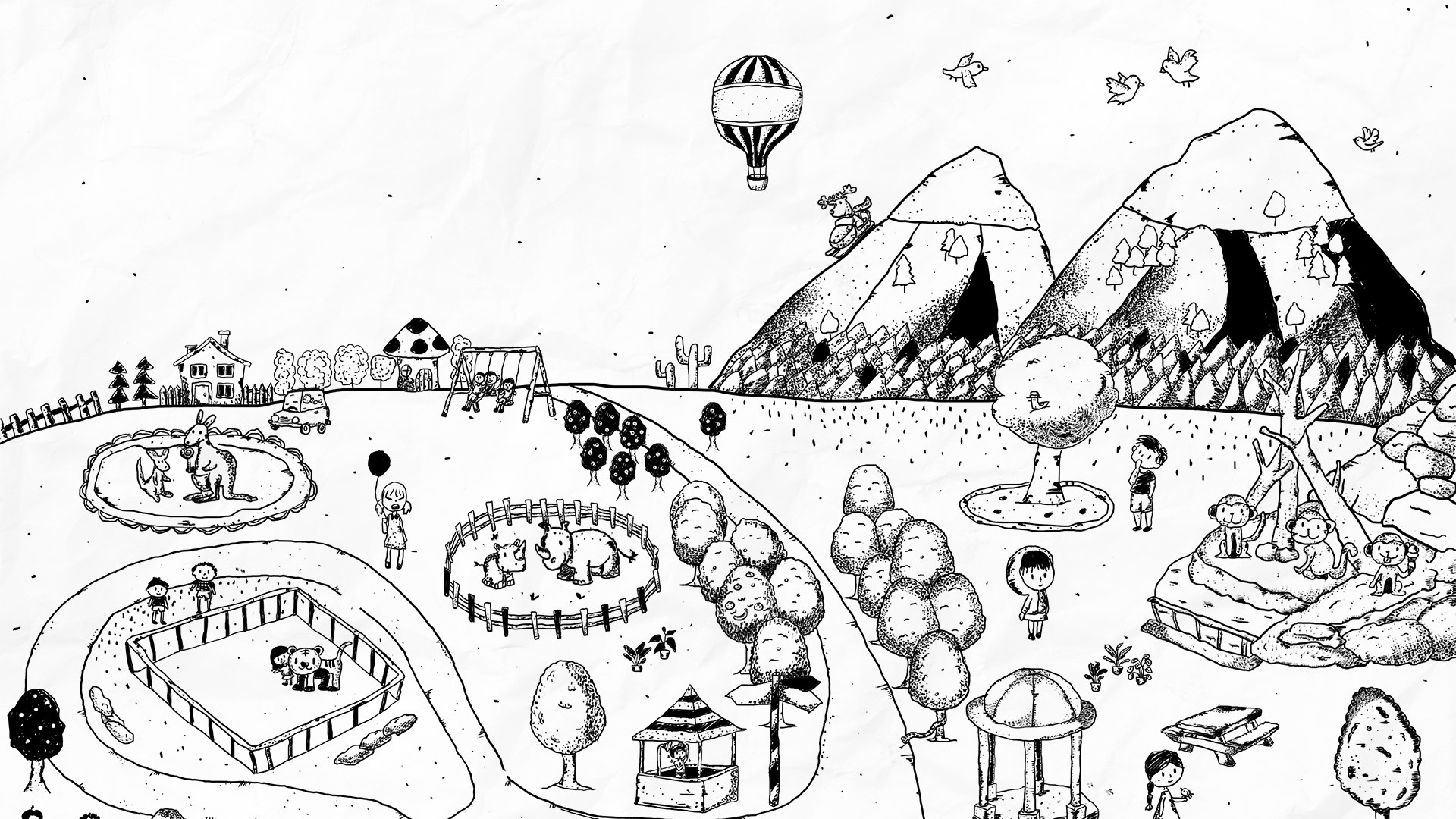 Чернобелые изображения в стиле дудларт делают игру сложной