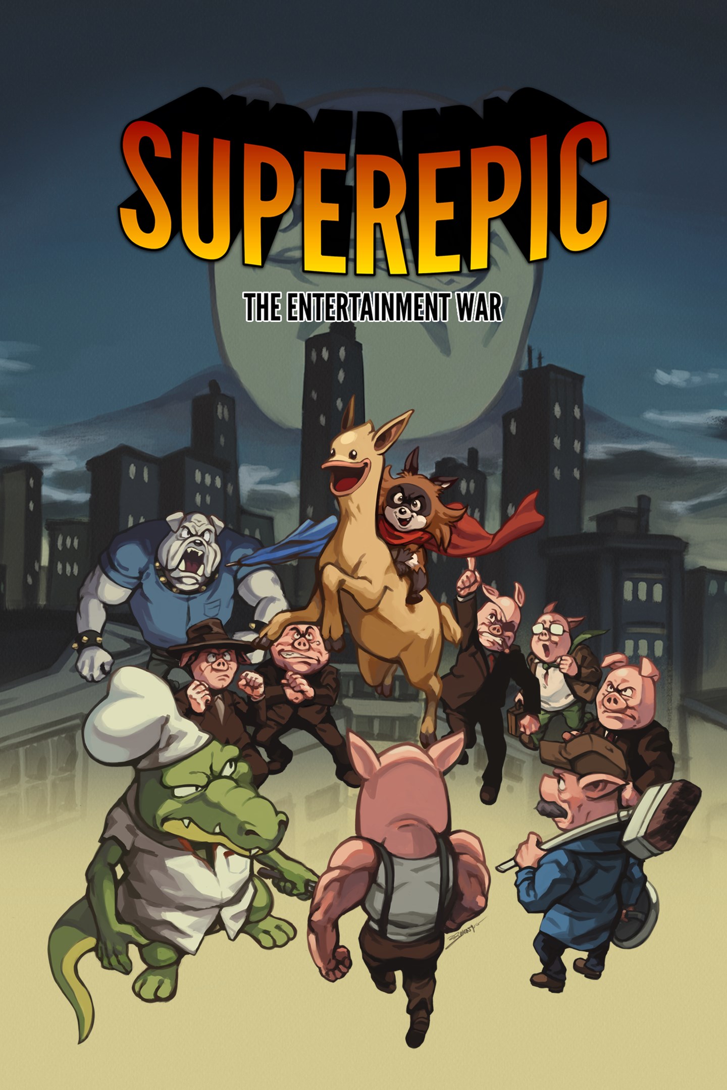 Присоединяйтесь к еноту и ламе отправившимся спасать видеоигры в привычном нам виде SuperEpic это приключенческий экшен с динамичным и нелинейным игровым процессом в стиле metroidvania изобилующий сатирой и юмором Исследуйте окружающий мир и сражайтесь с врагами из зловещей Регнанткорп используя комбо с любым понравившимся вам оружием