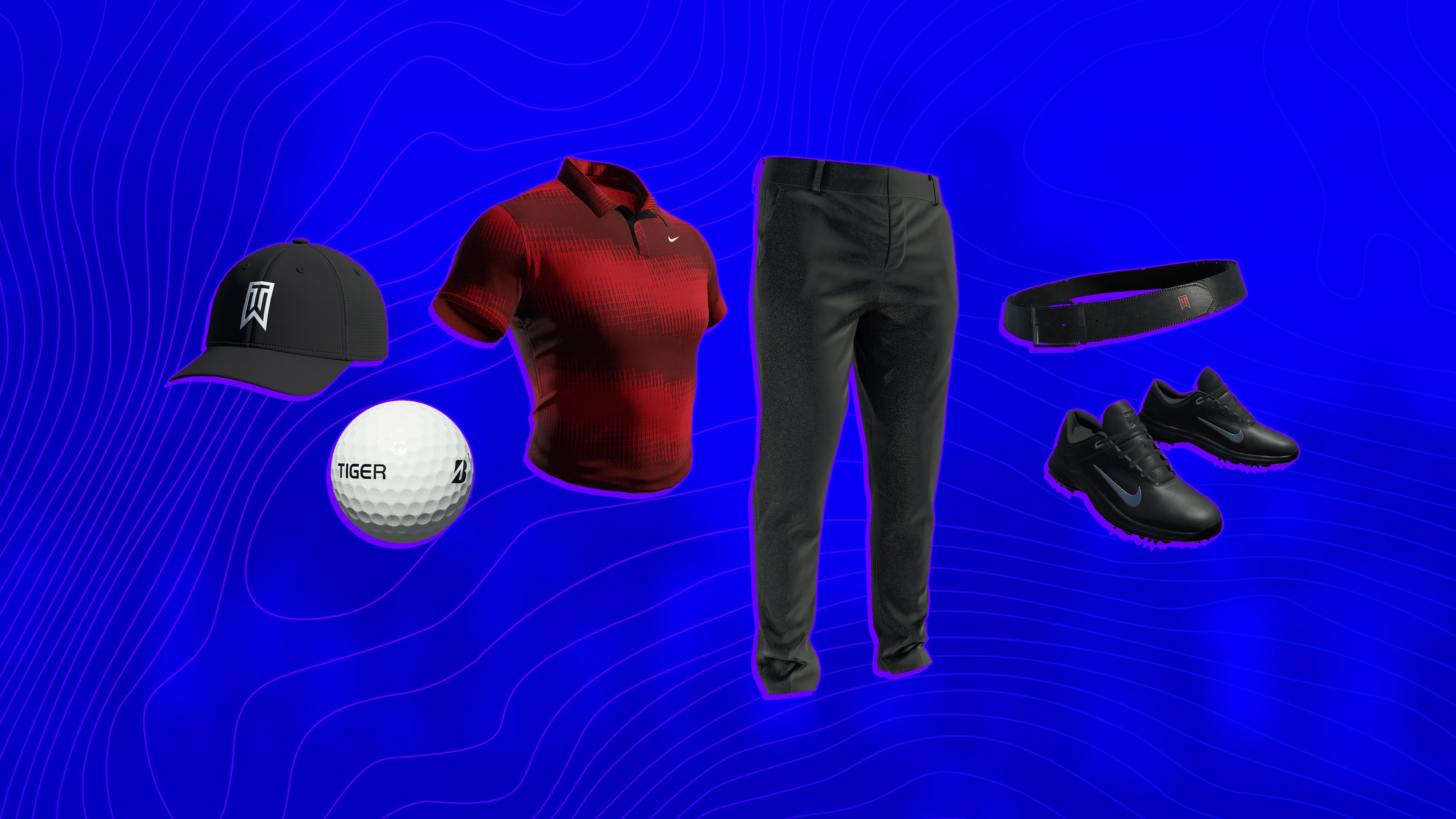 Предметы для изменения внешнего вида Red Nike Polo Black Nike Pants TW Golf Belt из фирменного воскресного набора Tiger Woods недоступны для женских игроков MyPLAYERs