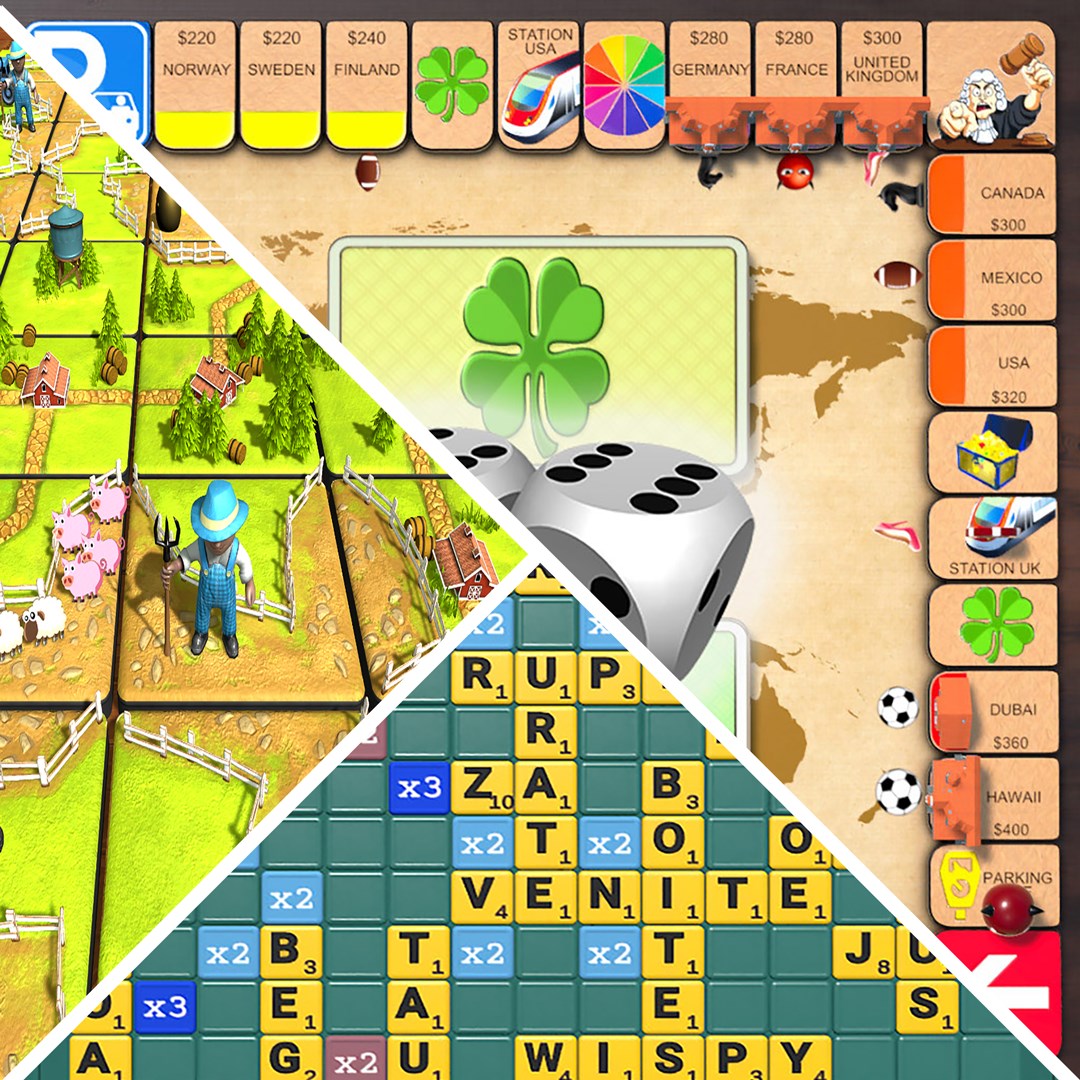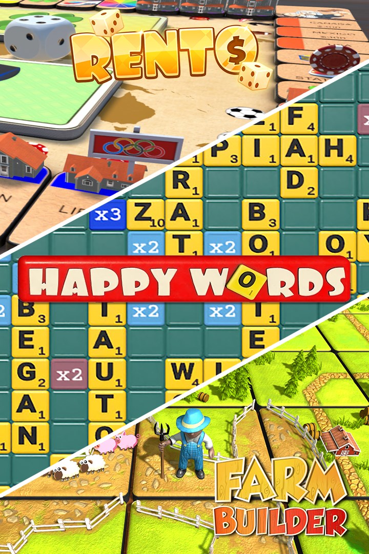 В этот комплект входят наши лучшие семейные настольные игры Rento Fortune Happy Words и Farm Builder