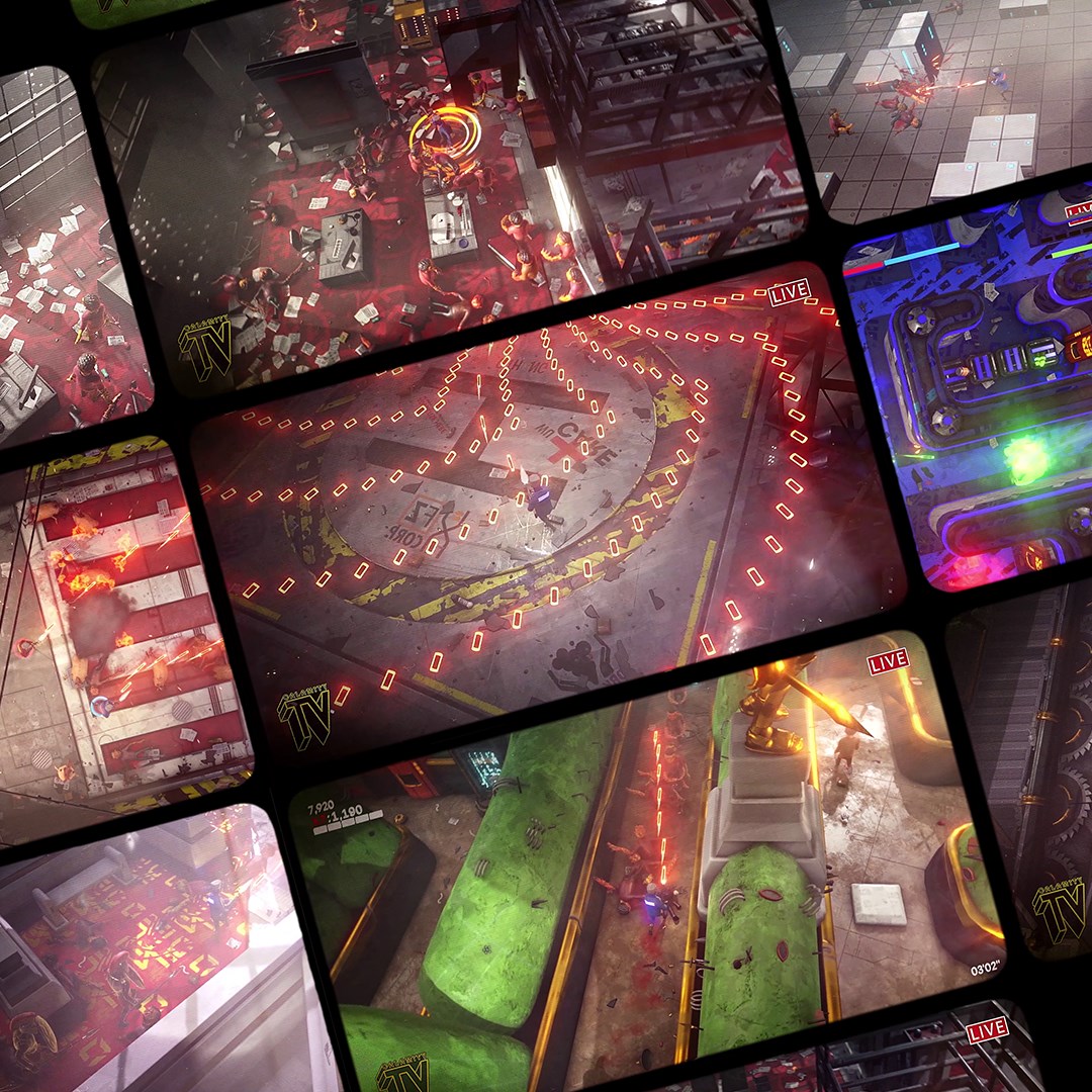Freakout Calamity TV Show is a juicy TopDownDualStickShooter inspired by old school arcade games and more recent Die Retry shooters