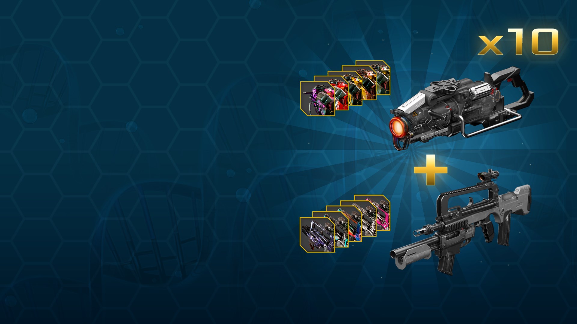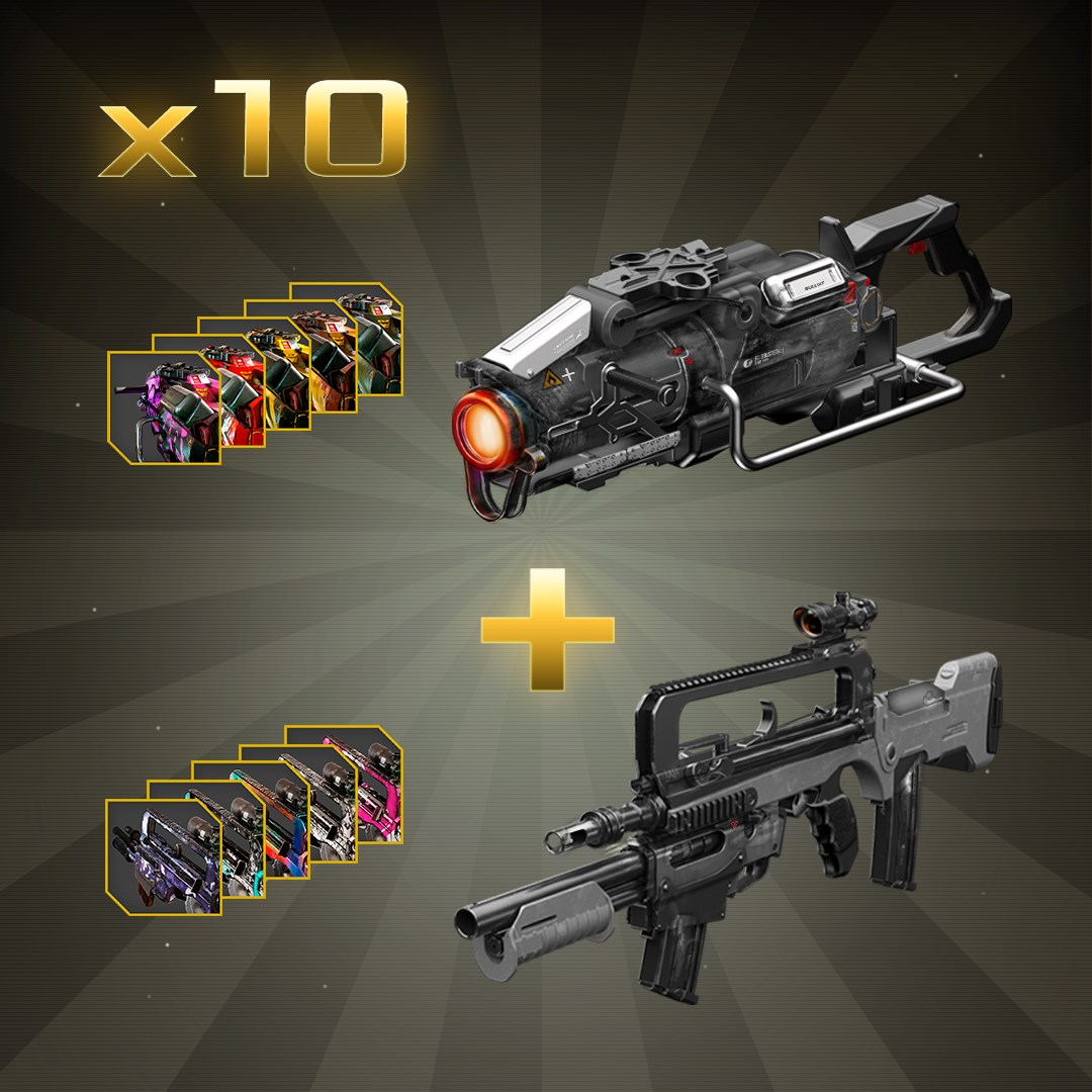 Включает в себя винтовкудробовик FAMAS и Термит из обновления Межзвездное безумие У каждого оружия по 5 вариантов внешнего вида