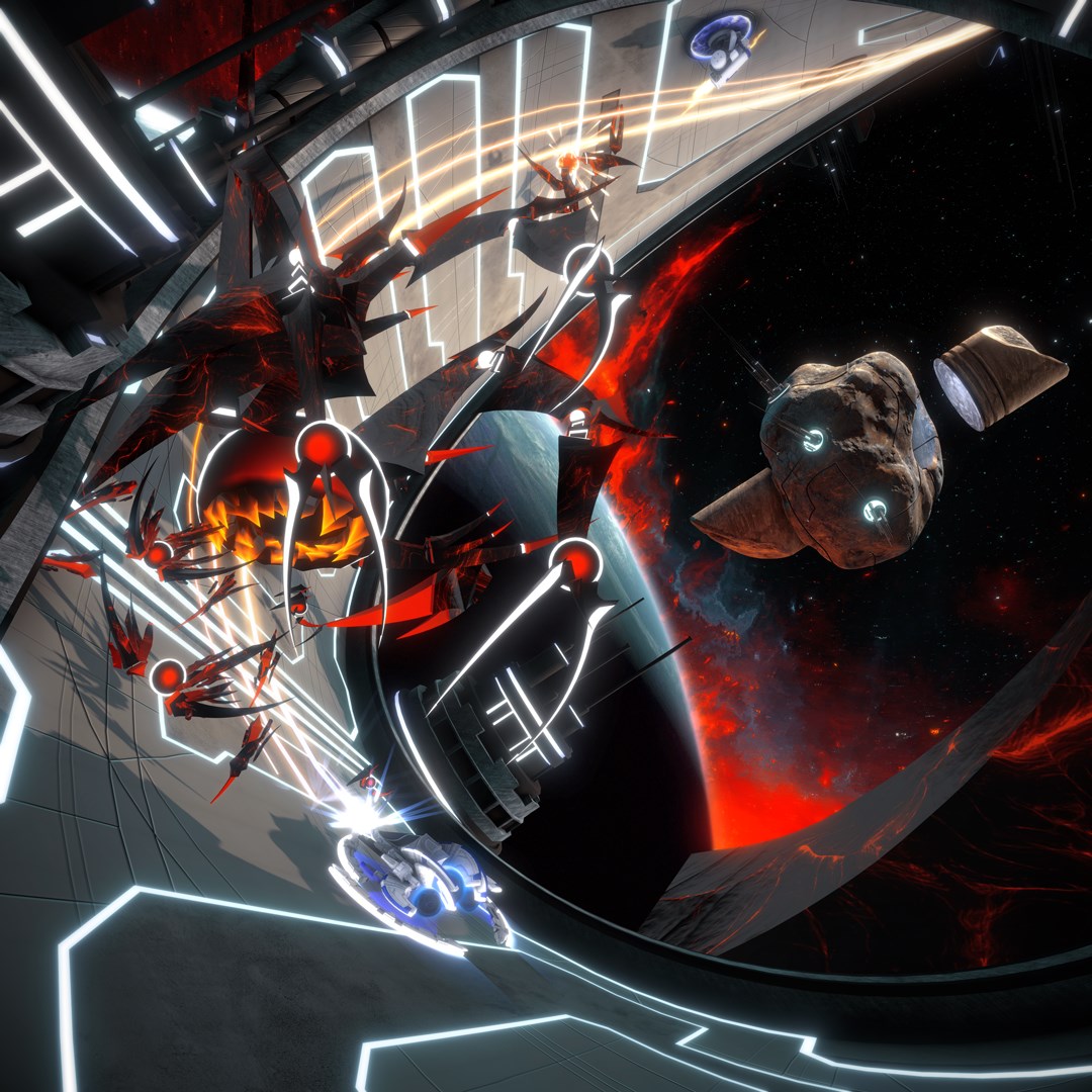 Игра сделана по мотивам классических аркад Здесь нужно искать усилители оружия и прочие улучшения при этом уворачиваясь от вражеского огня стреляя по межпространственным жукам и сражаясь с огромными боссами В кампании с ветвящимся сюжетом можно будет легко обучиться игре но вот полностью освоить её и подняться в рейтинге будет непросто