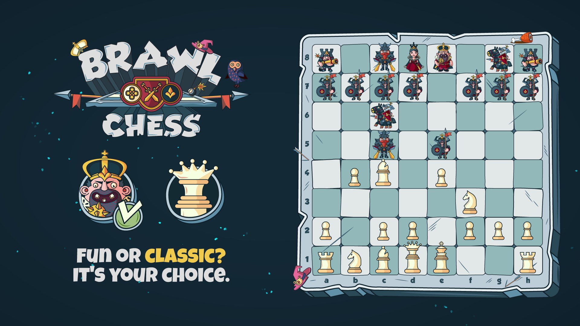 Мультипликационные визуальные эффекты делают игру доступной для всех Там столько всего происходит Стрелы летят над головами мечи ломаются в пылу битвы Или может быть вы предпочитаете классические шахматы Вы всегда можете изменить свои образы на традиционные