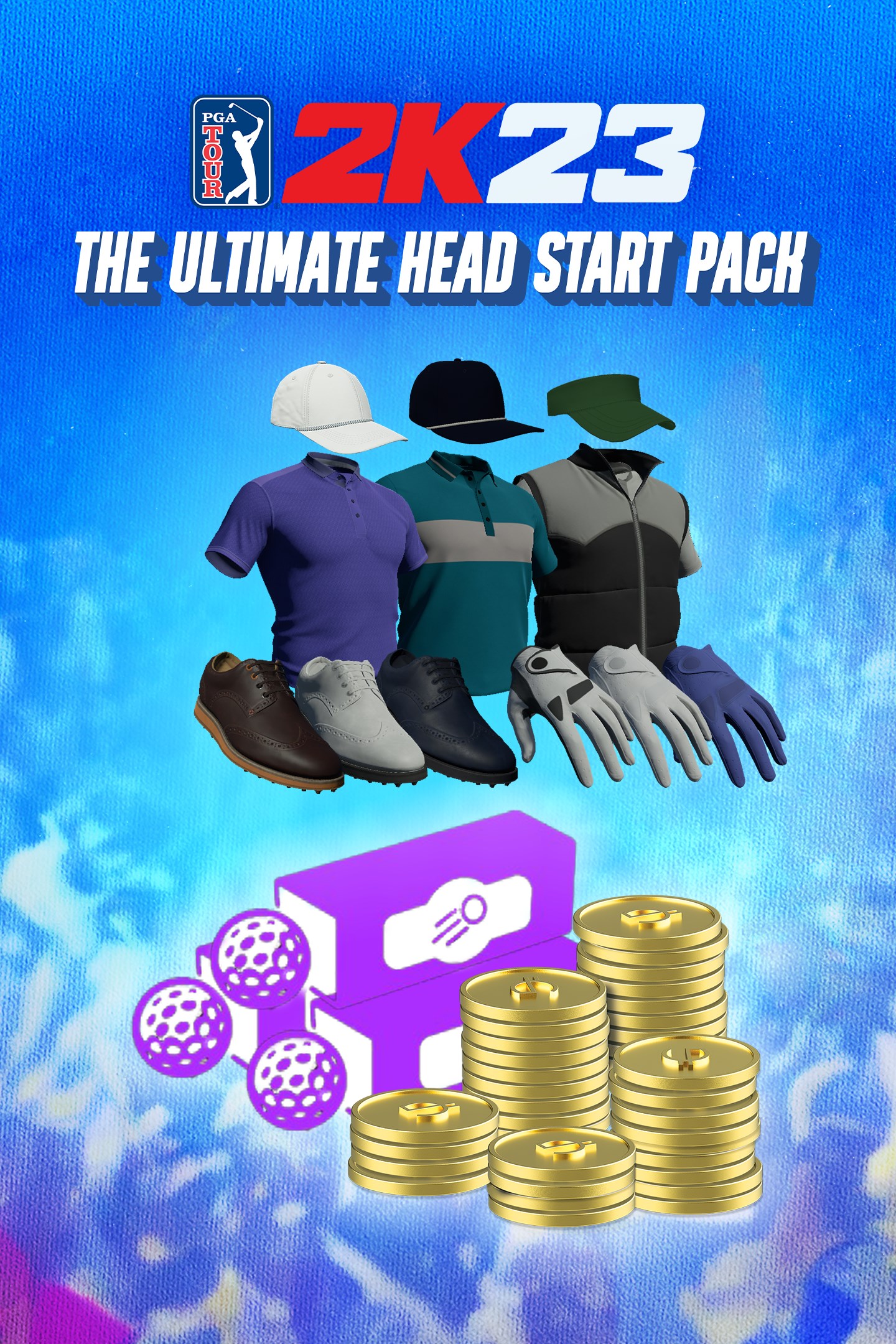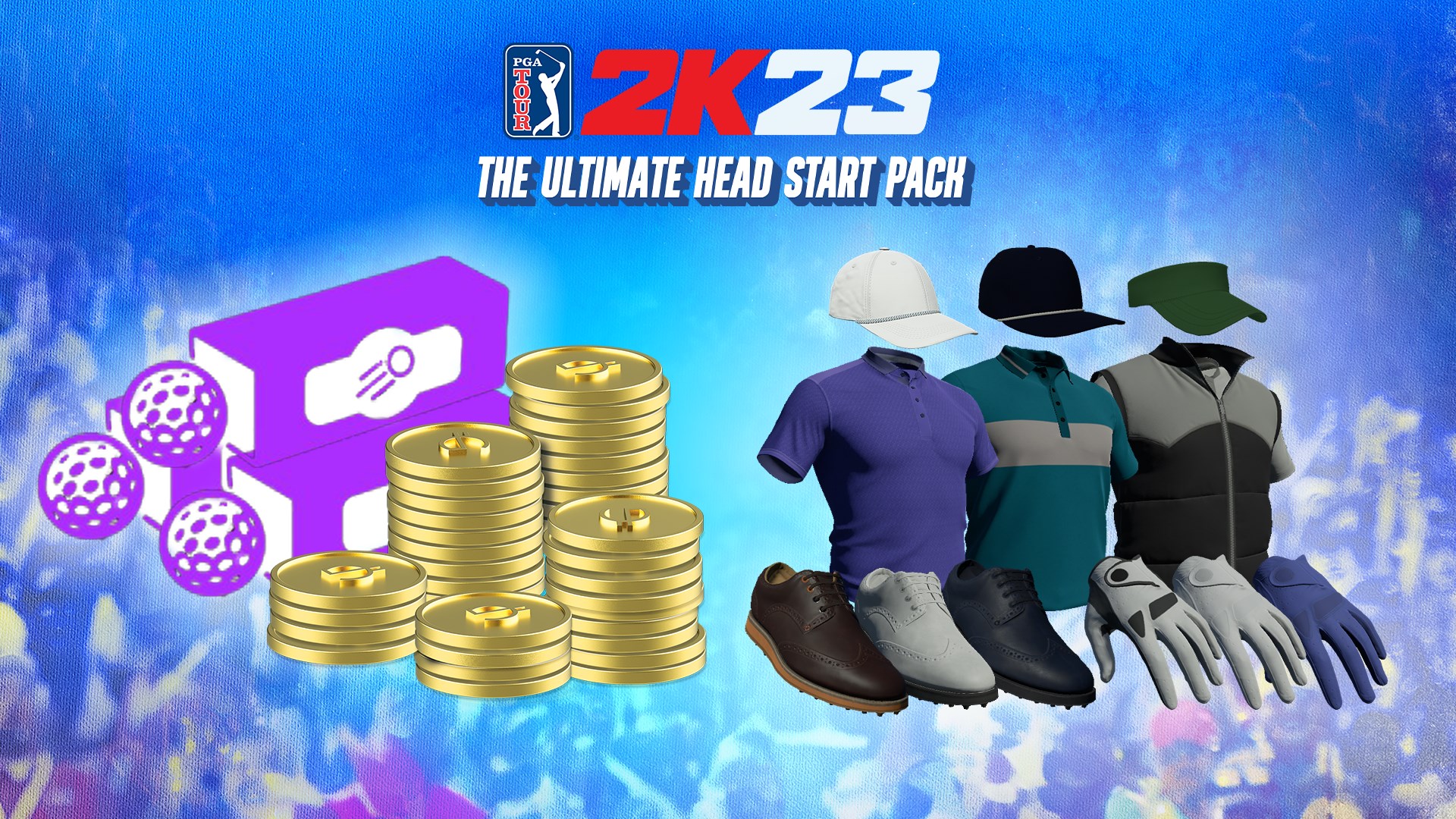 При приобретении Ultimate Head Start Pack вы получите 4000 ВВ 12 мячей Epic Golf а также доступ ко всей экипировке и одежде в Pro Shop за исключением товаров с ограниченным сроком из раздела избранного