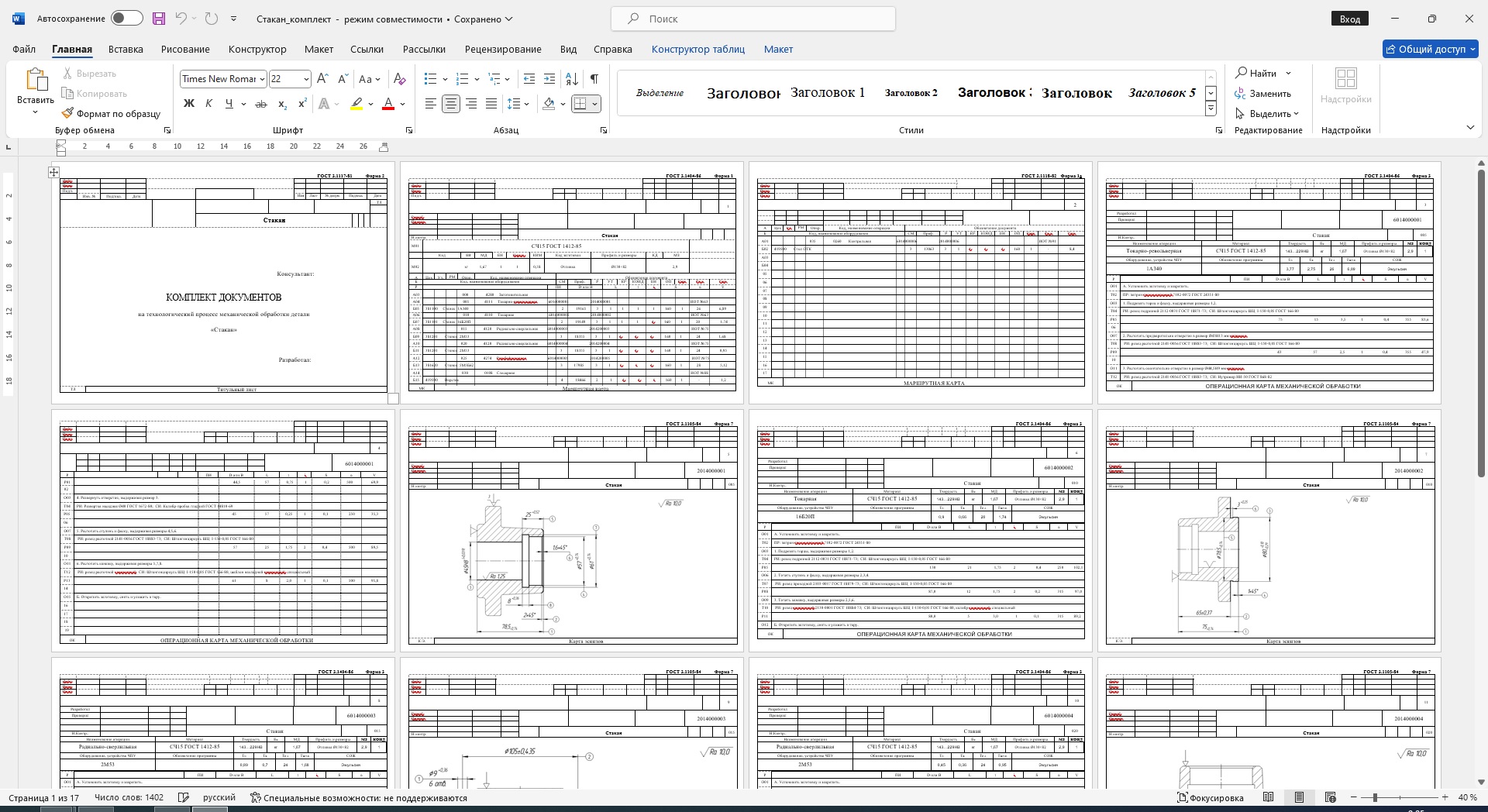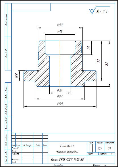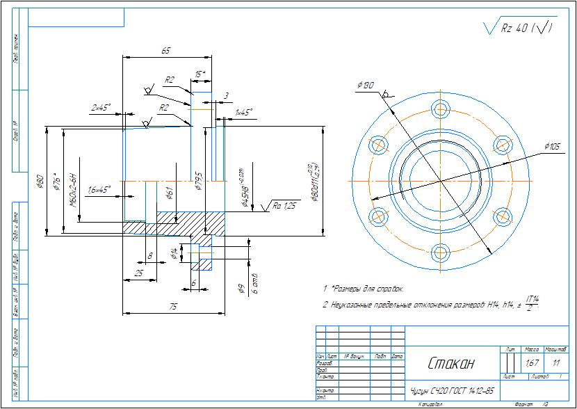 Технологический процесс механической обработки детали стакан от заготовки до готовой детали в виде технологических карт: маршрутные карты, операционные карты, карты эскизов, контрольная карта. Карты выполнены в ворде. Также приложены рабочий чертеж детали стакан и чертеж заготовки. Чертежи выполнены в компасе.