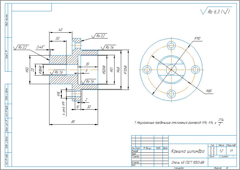 Технологический процесс изготовления детали крышка цилиндра в виде технологических карт: маршрутные карты, операционные карты, карты эскизов. Также выполнены операционные эскизы на 4 перехода (операции). Приложен рабочий чертеж детали. Чертежи выполнены в компасе, карты в ворде.