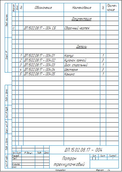 Сборочный чертеж и спецификация на патрон трехкулачковый самоцентрирующий диаметром 320 мм в компасе