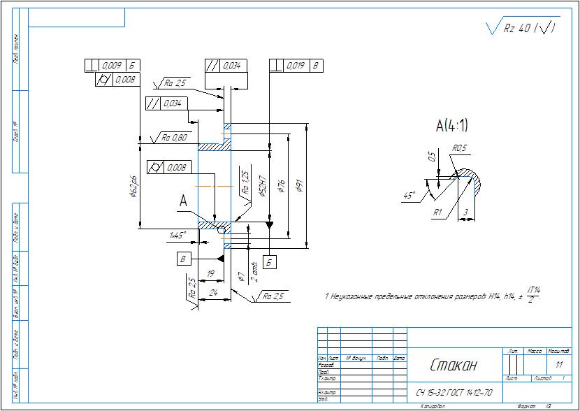 Рабочий чертеж детали стакан в компасе