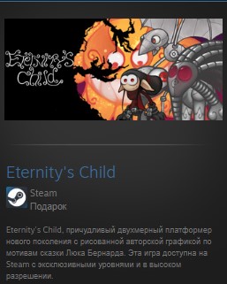 Eternity´s Child, причудливый двухмерный платформер нового поколения с рисованной авторской графикой по мотивам сказки Люка Бернарда. Эта игра доступна на Steam с эксклюзивными уровнями и в высоком разрешении.