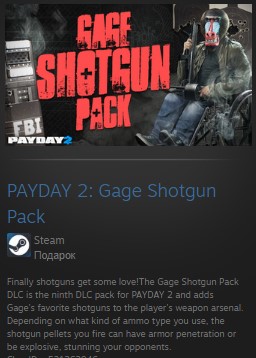 Наконец-то дробовики получили немного любви! Gage Shotgun Pack DLC — это девятый пакет DLC для PAYDAY 2, который добавляет любимые дробовики Гейджа в арсенал оружия игрока. В зависимости от того, какой тип боеприпасов вы используете, дробовики, которыми вы стреляете, могут иметь бронепробиваемость или быть взрывоопасными, оглушая ваших противников.