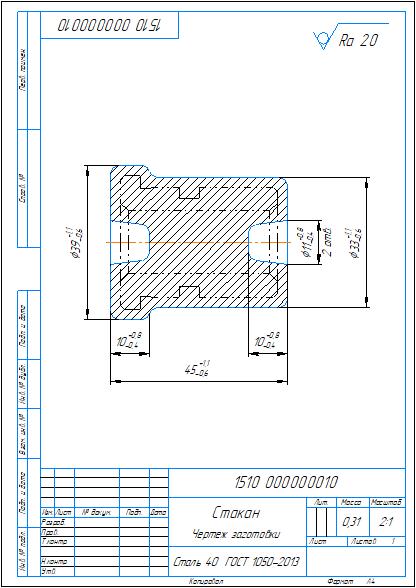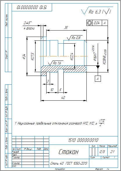 Технологический процесс механической обработки (изготовления) детали стакан в виде технологических карт: маршрутные карты, операционные карты, карты эскизов. Также приложены рабочий чертеж детали стакан и чертеж заготовки. Карты выполнены в ворде, чертежи в компасе.