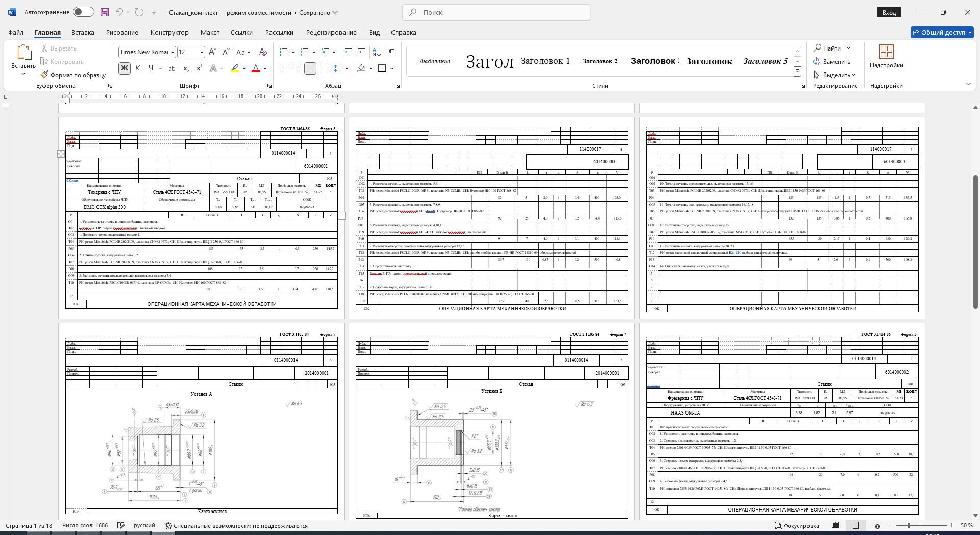 Комплект технологической документации изготовления детали стакан в ворде: маршрутные карты, операционные карты, карты эскизов. Также приложен рабочий чертеж детали стакан в компасе.