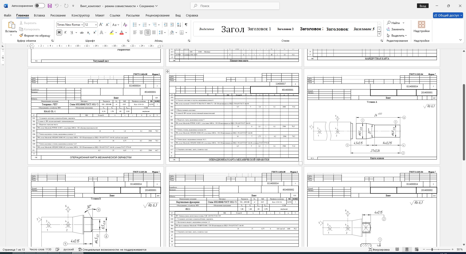 Технологический процесс изготовления детали винт в виде технологических карт: маршрутные карты, операционные карты, карты эскизов. Также приложен рабочий чертеж детали в компасе. Карты выполнены в ворде.