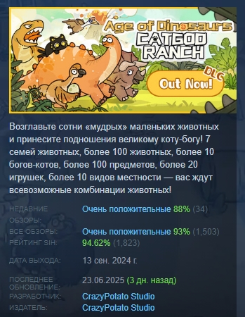 Возглавьте сотни «мудрых» маленьких животных и принесите подношения великому коту-богу! 7 семей животных, более 100 животных, более 10 богов-котов, более 100 предметов, более 20 игрушек, более 10 видов местности — вас ждут всевозможные комбинации животных!