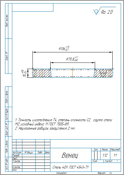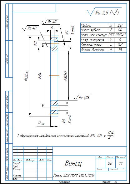 Технологический процесс изготовления детали венец зубчатый в виде технологических карт: маршрутные карты, операционные карты, карты эскизов. Карты выполнены в ворде. Также приложен рабочий чертеж детали венец зубчатый и чертеж заготовки. Чертежи выполнены в компасе.