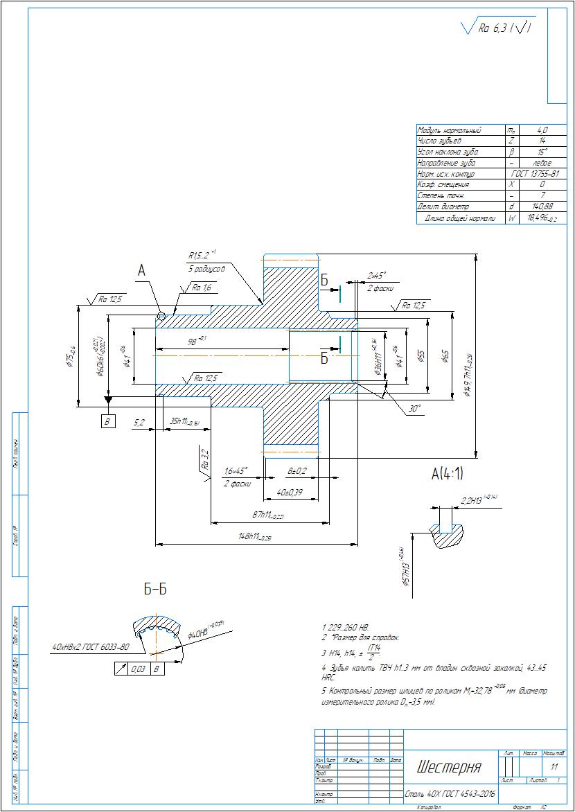 Рабочий чертеж детали шестерня цилиндрическая в компасе